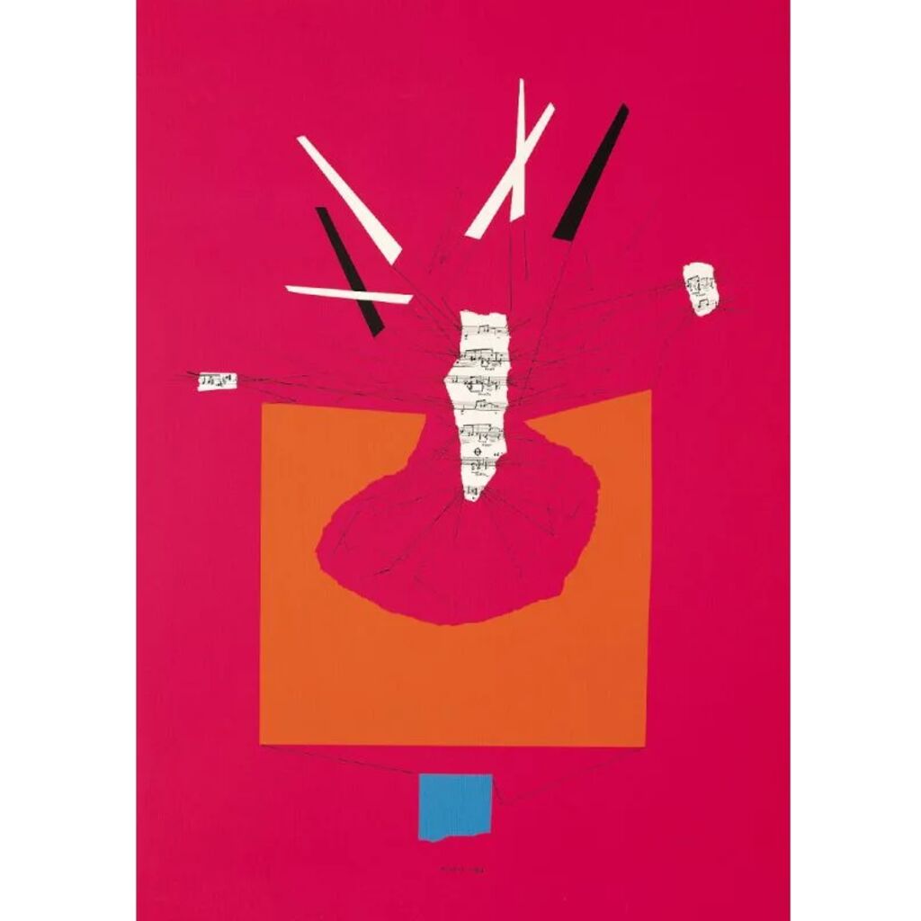 Ricostruzione teorica rosa is a five-colour silkscreen print and is part of the collection “Edizioni d’arte” (Art Editions). The concept is the theoretical reconstruction of imaginary objects starting from fragments of leftover pieces and using a purely random method to explore shapes, materials and structure.