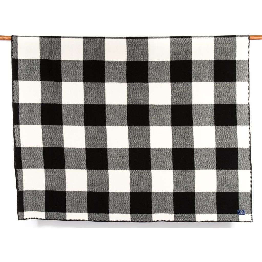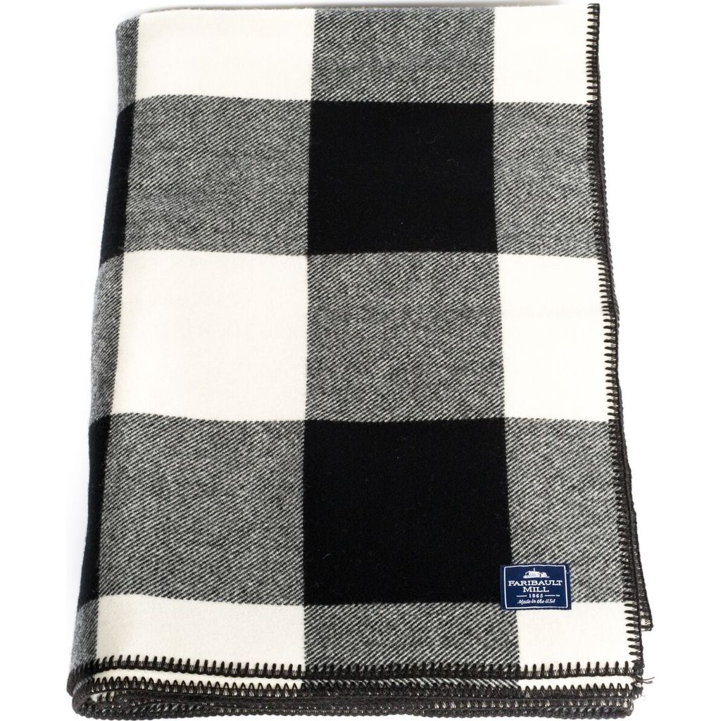 Faribault Oversized Buffalo Check Wool Blanket | White/Black