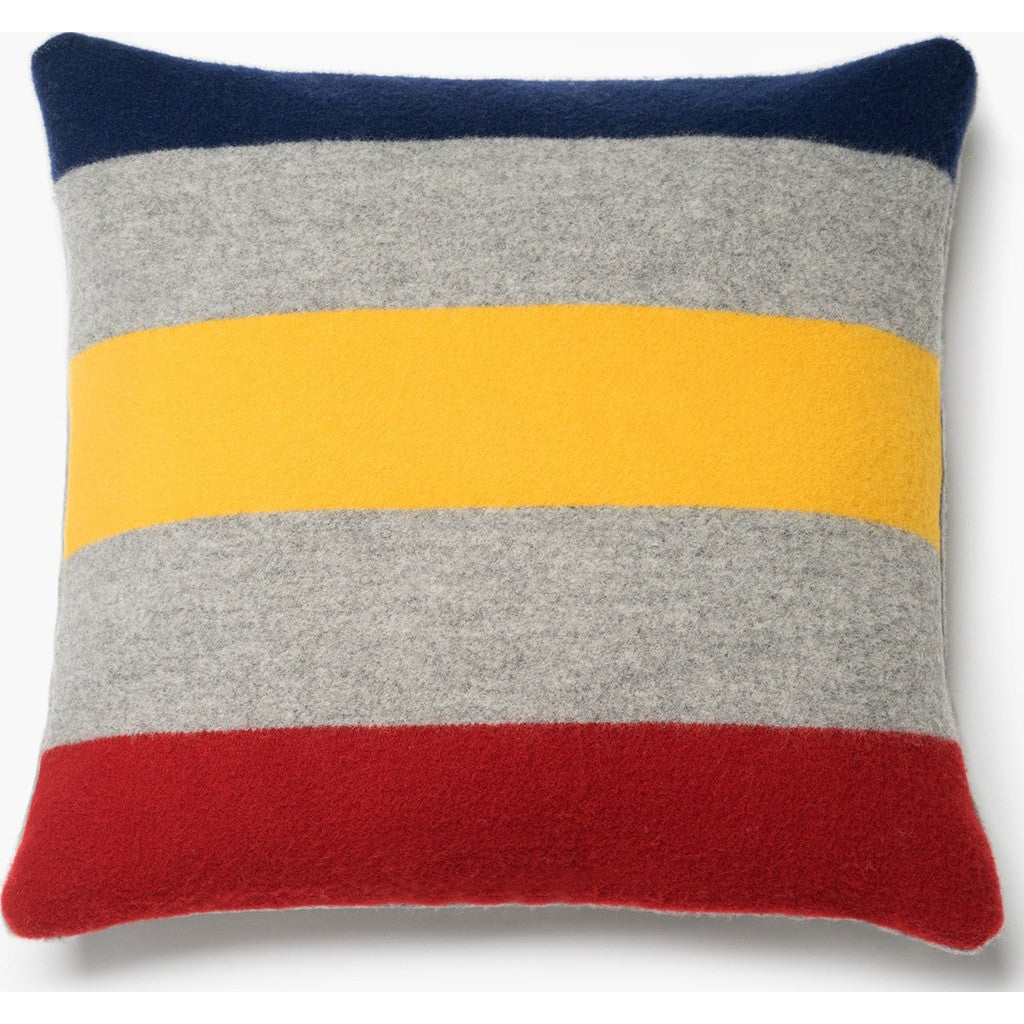 One of Faribault's iconic motifs, the Revival Stripe pattern also comes in pillow form. This Revival Stripe Pillowcase has gray, yellow, navy and red stripes, perfect for providing a decorative accent in your home.
