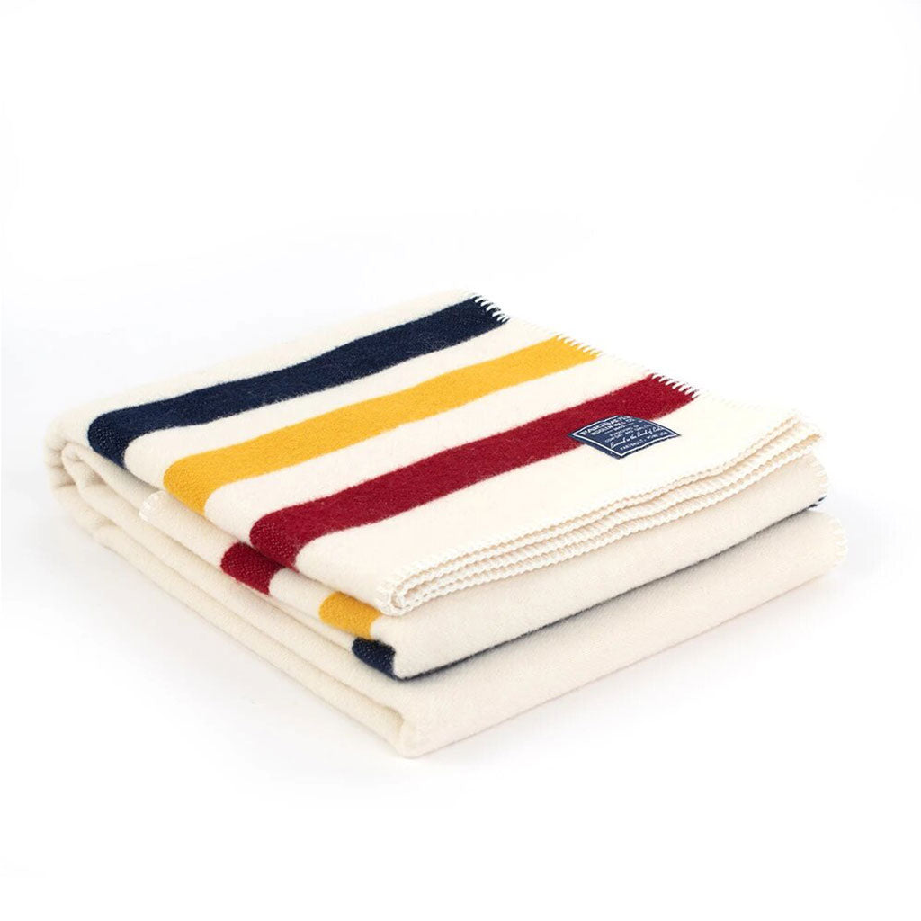 When the Faribault Woolen Mill was reborn in 2011 after a brief closure they chose the Revival Stripe wool throw as the first release in a nod to their heritage. With its traditional trapper design, this three-stripe throw has been part of the Faribault Woolen Mill line for decades. Constructed in some of the finest merino wool and double woven to create a lush, luxurious hand, the Revival Stripe defines Faribault craftsmanship and heritage. Whether you're playing homebody for the night or heading upcountry for some camping, stay warm and comfortable with the Revival Stripe Wool Throw.