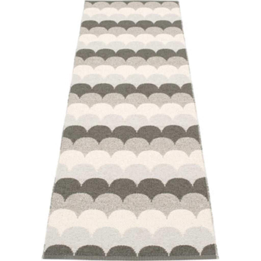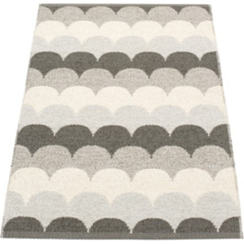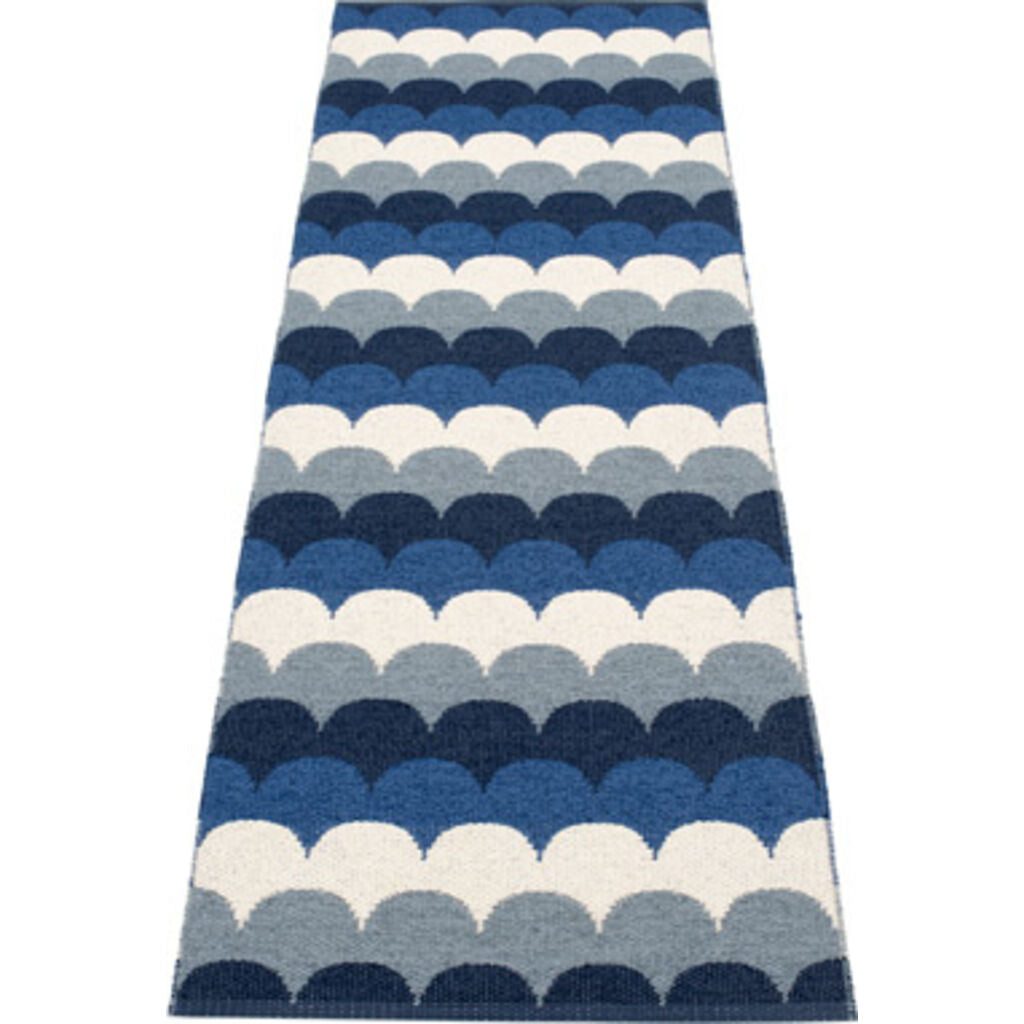 Pappelina Koi is the original plastic rug, crafted with love and pride in Sweden. Pappelina's Koi design, inspired by fish scales, is in a mixture of tight and loose weave sections creating a differing textures as well as colours. Woven by hand and brought to life through a close interplay between design and weave. Woven on a traditional loom using wooden shuttles. Non-absorbent and hypoallergenic, Pappelina plastic rugs are easy to clean and machine washable at 30°C. These are woven using two colours together to give a subtle colour combination. Very practical and easy to care for rug in Swedish manufactured, certified PVC. Double folded hemmed edge with strong seam and sewn rubber label. Measurements may vary ±4% as a result of the various craft processes during manufacturing. Pappelina rugs can be used indoor and outdoor. The modern rug with a maritime striped look can be placed on the balcony, on the terrace or in the living room. Pappelina Koi rugs are beautifully styled, longer lasting, easy to clean, waterproof, mould resistant, dust repellent, fibre free and sterile with no toxin content improving life for asthma and allergy sufferers. Go on and feel the benefit!