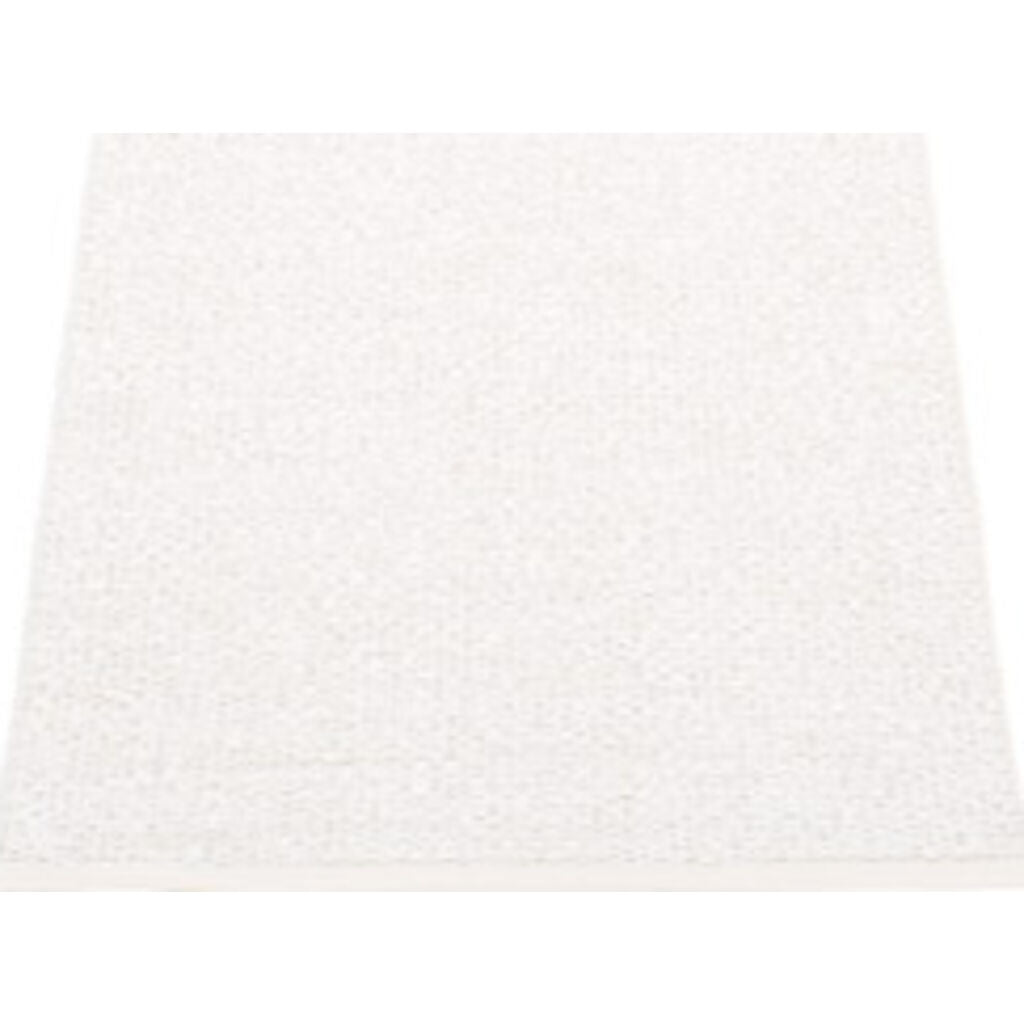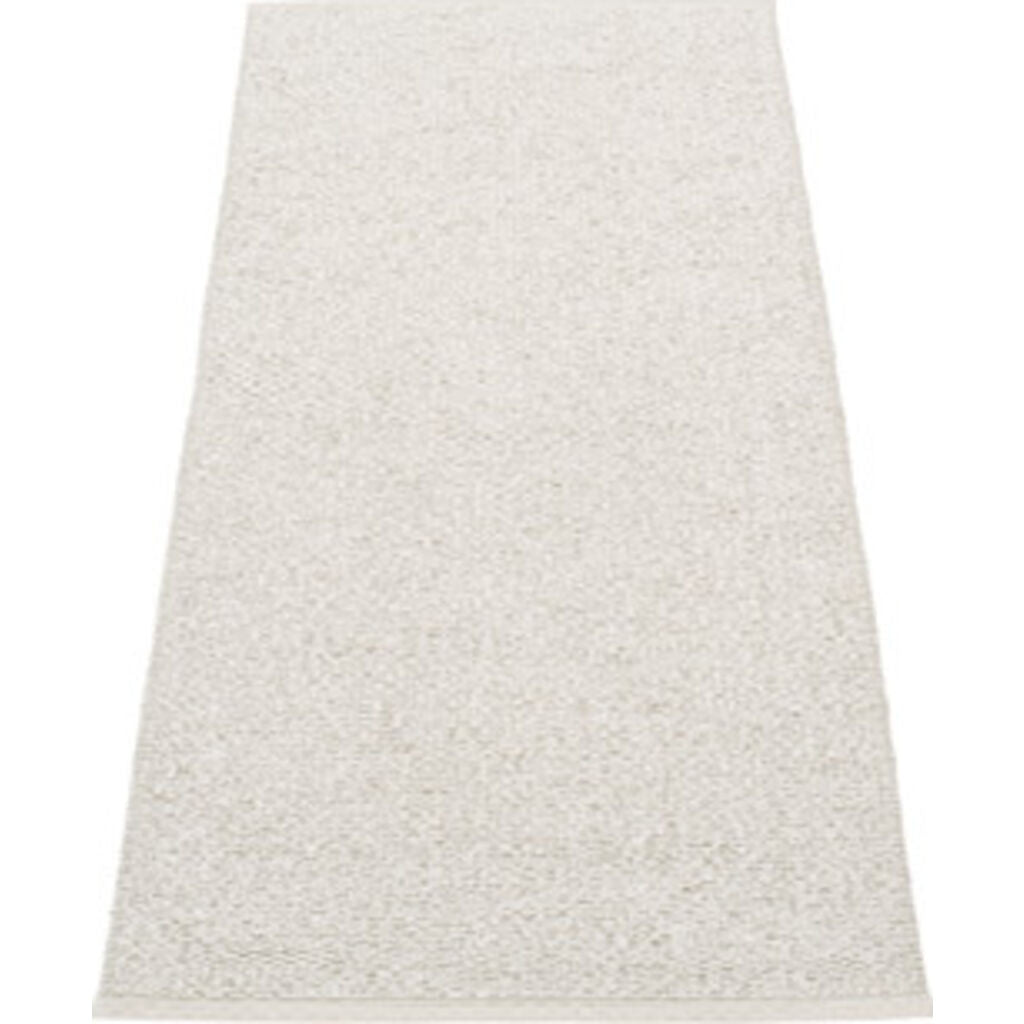 Pappelina Svea is the original plastic rug, crafted with love and pride in Sweden. Svea is a luxury plastic rug from Pappelina with a nice mix of matle and metallic PVC. Woven by hand and brought to life through a close interplay between design and weave. Woven on a traditional loom using wooden shuttles. Non-absorbent and hypoallergenic, Pappelina plastic rugs are easy to clean and machine washable at 30°C. These are woven using two colours together to give a subtle colour combination. Very practical and easy to care for rug in Swedish manufactured, certified PVC. Double folded hemmed edge with strong seam and sewn rubber label. Measurements may vary ±4% as a result of the various craft processes during manufacturing. Pappelina rugs can be used indoor and outdoor. Pappelina Svea rugs are beautifully styled, longer lasting, easy to clean, waterproof, mould resistant, dust repellent, fibre free and sterile with no toxin content improving life for asthma and allergy sufferers. Go on and feel the benefit!