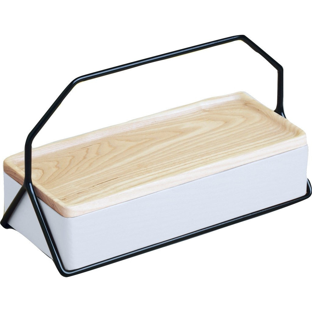 This innovative storage caddy is a tray, a box, and a tablet or phone stand all in one. Use this modular ashwood storage system for keeping all your desk and personal accessories organized and tidy, while keeping up with your emails or favorite shows.