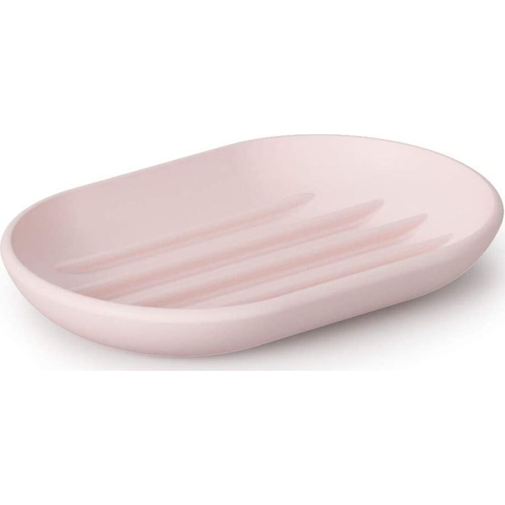 Touch Soap Dish by Umbra is a sleek and compact soap dish that will look great sitting out on your counter, thanks to its soft-touch finish, rounded edges, and curved shape. Its built-in ridges will keep your soap bar dry, elevating it above the bottom of the dish, so it dries fast and stays dry, instead of pooling water. Touch Soap Dish is made of a matte, soft-touch molded material, which is easy to clean, and highly durable. The finish is both luxurious and pleasing to the eye. Compact, it measures 5 x 3¼ x ¾ inches (12.7 x 8.3 x 1.9 cm). Match this soap dish with other products from the Touch Bath Collection for a cohesive look.