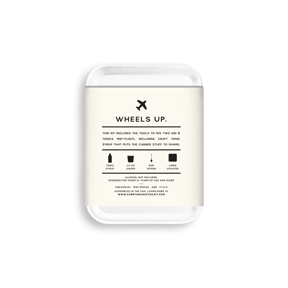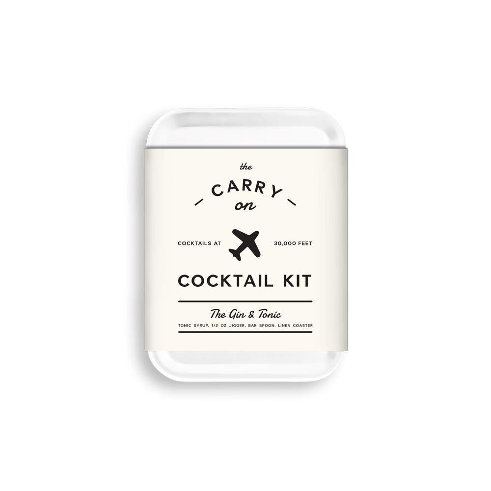W and P Design makes sure you're always prepared with the Carry-on Cocktail Kit. The Gin and Tonic Kit includes enough craft tonic syrup for two rounds, all on the plane.
