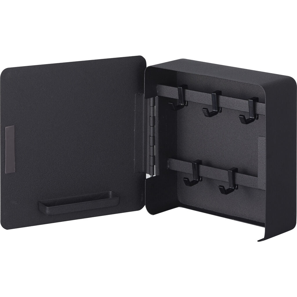 Finally a discreet way to store keys near the entryway free of unsightly catch-all bowls. The minimalist key cabinet features two interior bars that allow for keys to be spaced as close or as far apart as necessary. Use as many hooks as necessary. On the door, there is a special shelf especially designed for the Japanese hanko, or "name stamp". In America, the shelf might be more popular for holding chapstick. When not in use, the key cabinet's door catches with a magnet, offering a clean, modern solution for all of your household keys. Key cabinet can be magnet or wall-mounted.