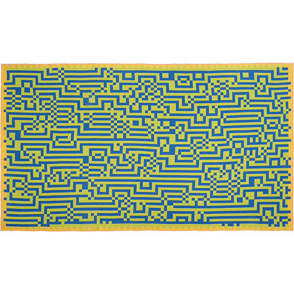 Straight from Zuzunaga's Bitmap collection; the Barcelona Two Merino Wool Throw Blanket boasts a jacquard technique, in addition to the use of three vibrant colors with a fourth and final color for stitching. This pixel-print blanket's modern aesthetic and striking appearance began from a photo of Mount Tibidabo. The original design is the result of zooming in on this photo until only points of color, or pixels remain. This striking green color is specifically utilized to be evocative of Mount Tibidabo's natural beauty. Each Bitmap Wool Throw Blanket is crafted in Spain from almost 2 kg of superfine Italian merino wool.