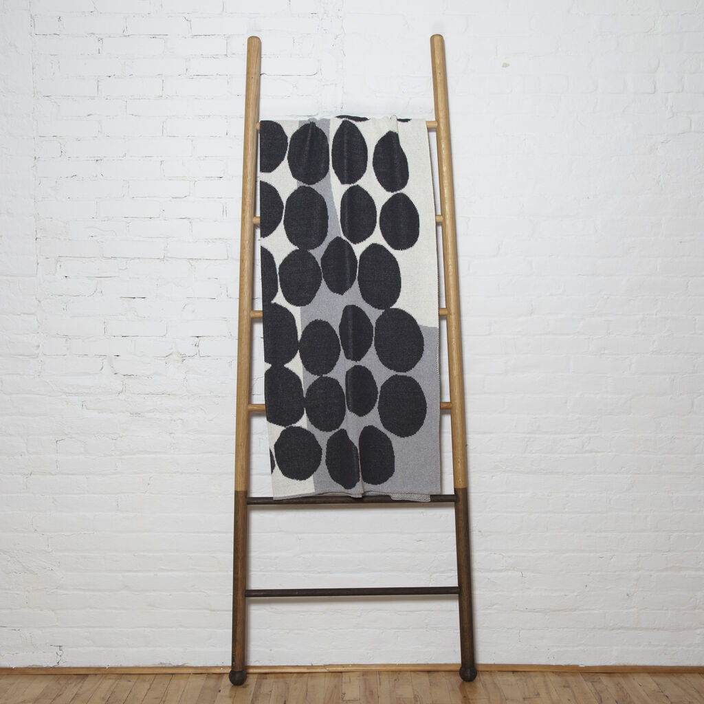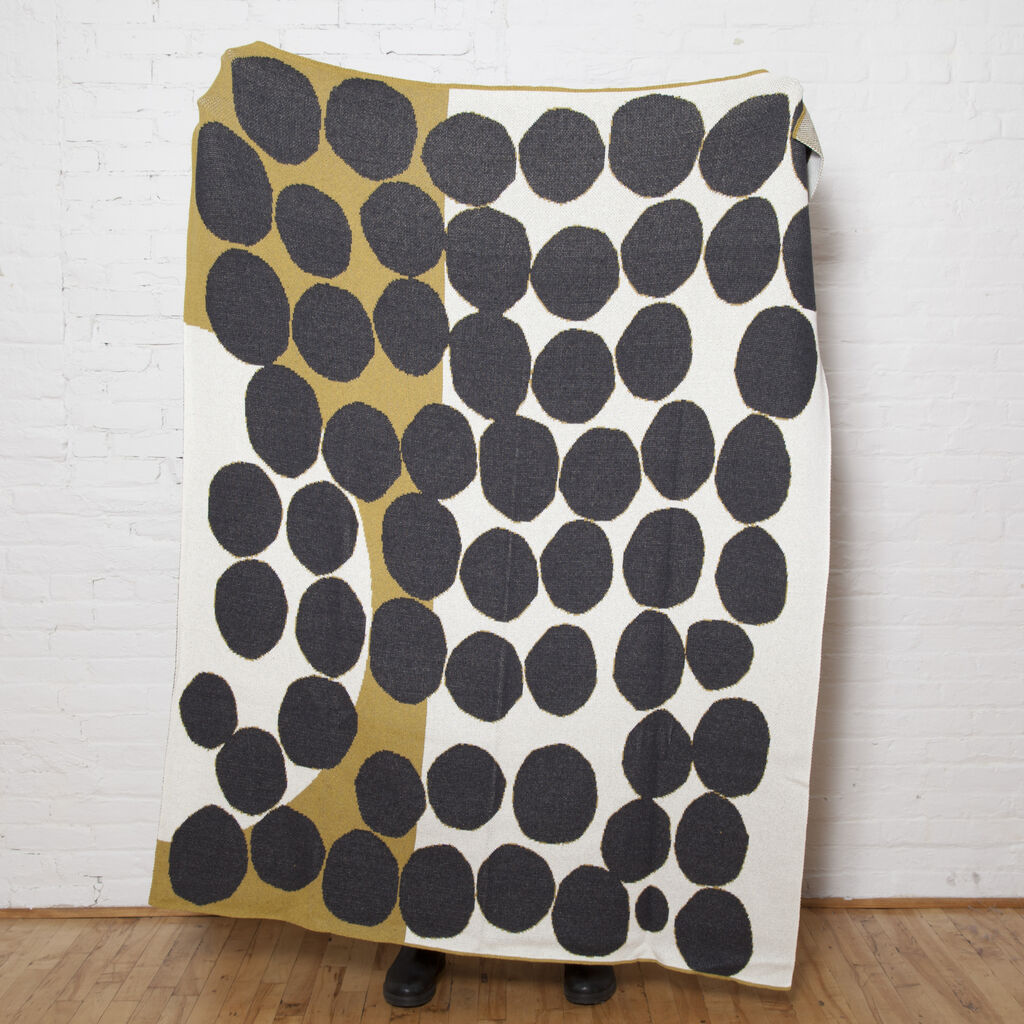 Inspired by our favorite day of the week, Saturday Green is a new collection of sustainable, modern throws designed in collaboration with female artists and made in the U.S.A. Boston-based Susy Pilgrim Waters is an award-winning illustrator with a passion for textiles and surface design. This design with its unsymmetrical pattern and jaunty painterly dots has a lithographic hand drawn quality. Susy’s designs translate effortlessly to our sustainable cotton throws.