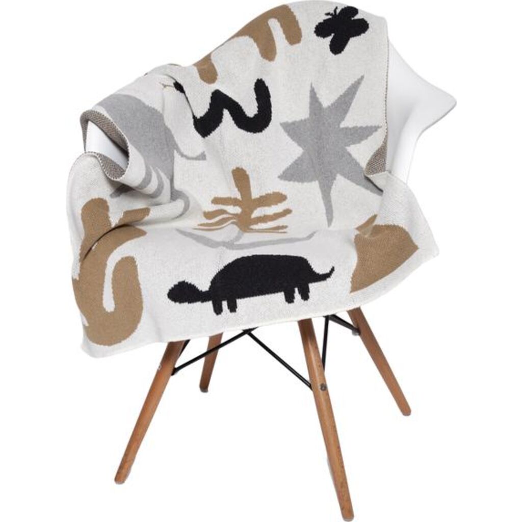 Designed by Viscaya Wagner (from our Saturday Green Collection) this new baby throw offers an unexpected take on traditional animal motifs. The expressive shapes and colors add a pop of color to any modern nursery.