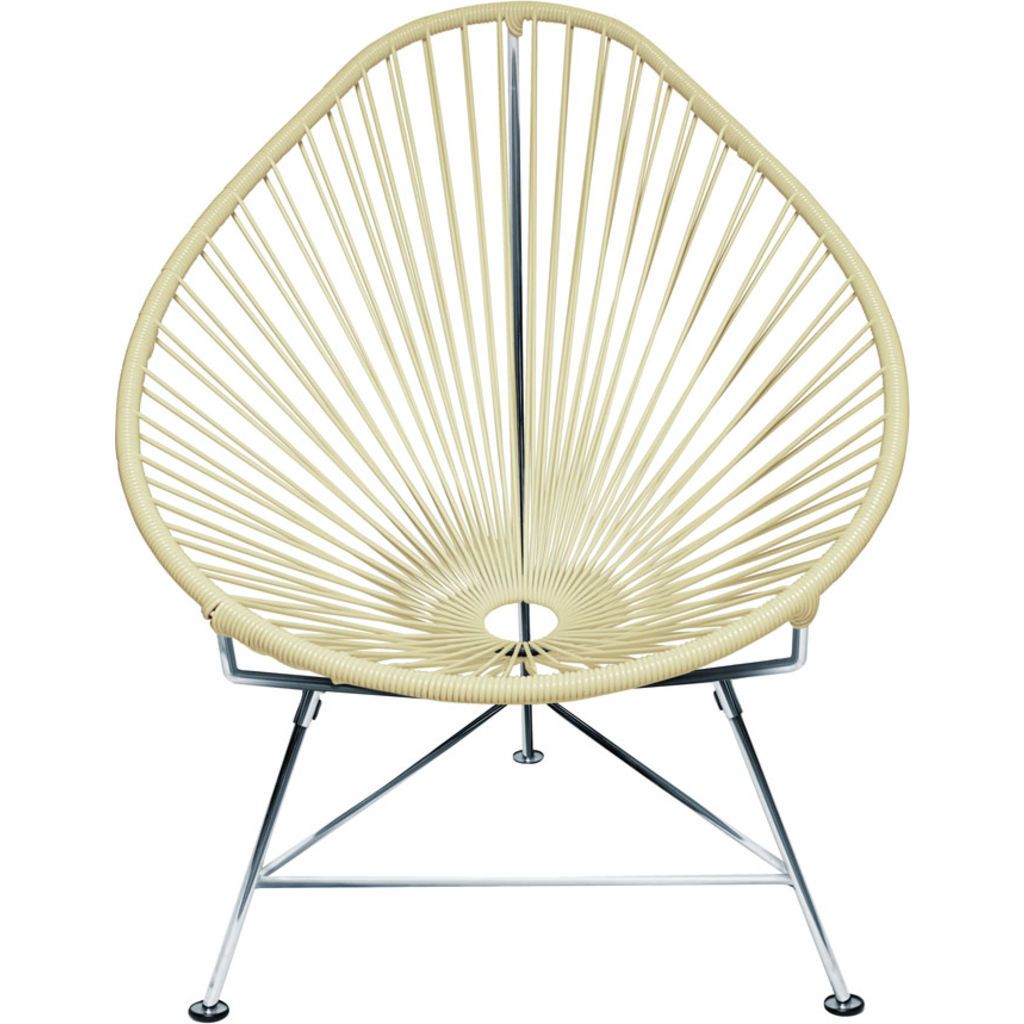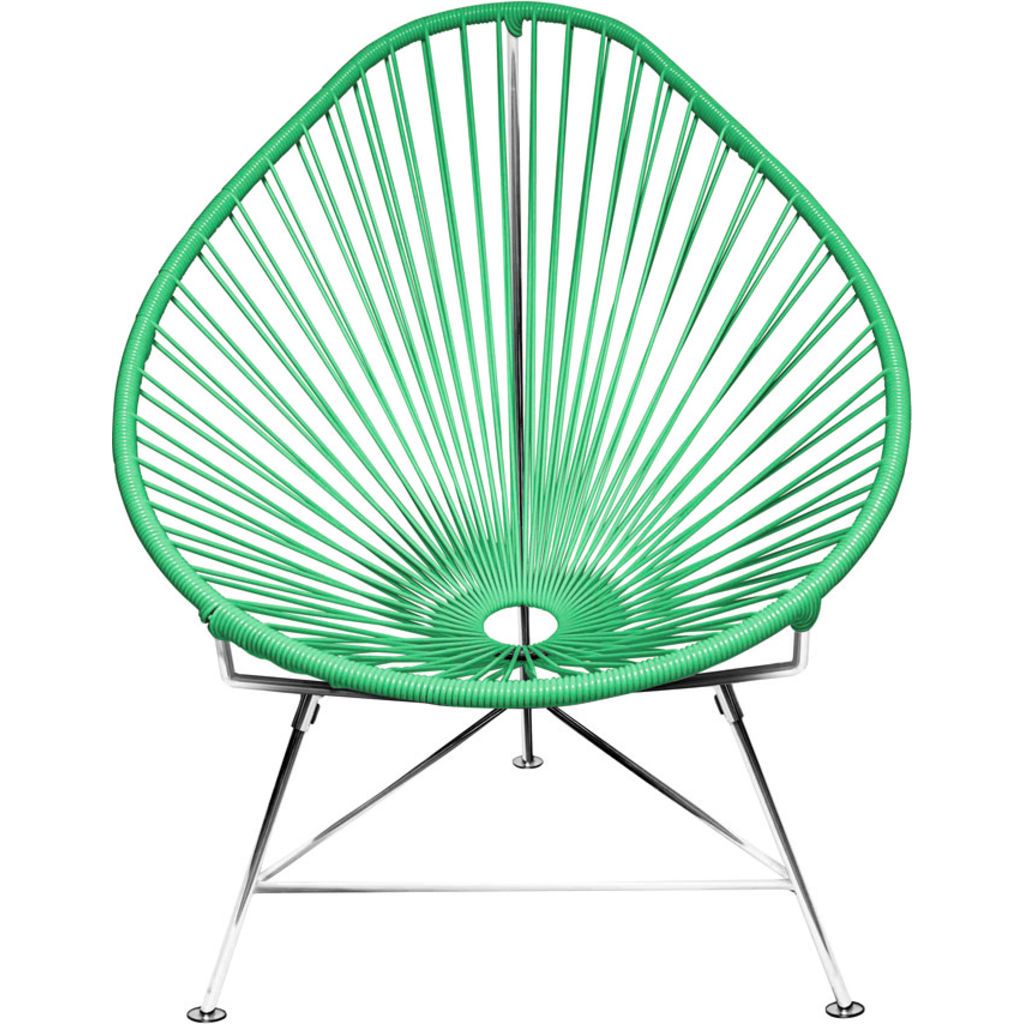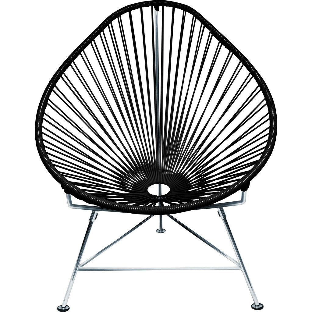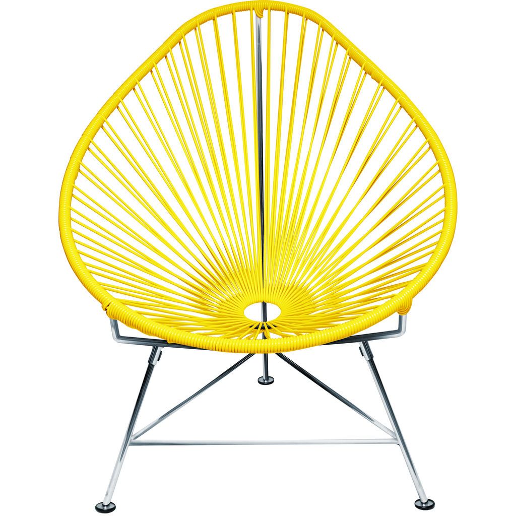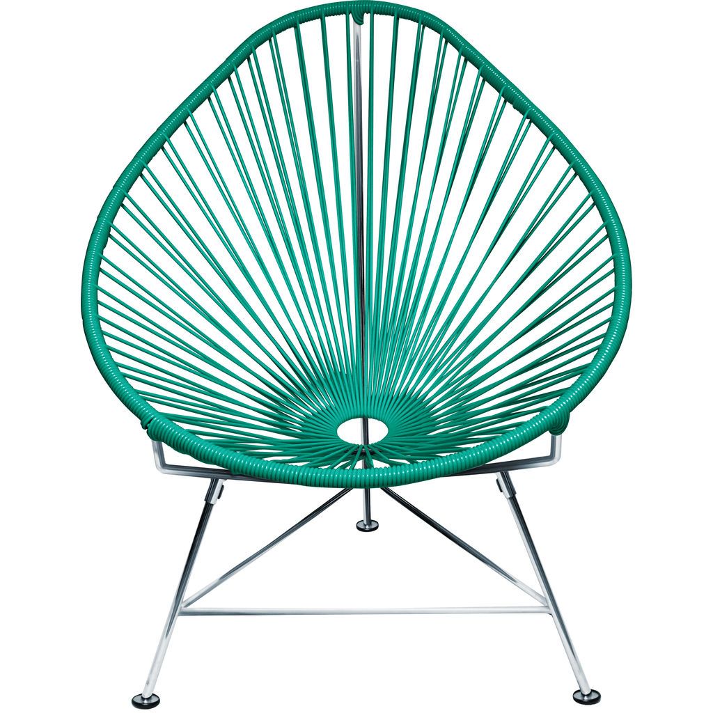 Sit down and relax in the pear-shaped Innit Acapulco Chair. One of the most simplistic pieces of furniture to maintain, this comfortable deep blue chair doesn’t need cushions, is easy to clean, weatherproof, breathable, and stackable. Innit Designs gave the Acapulco Chair a chrome-finished steel frame and colorfast UV-resistant vinyl cord so you can enjoy this retro design indoors or outdoors. This retro classic lounge chair is highly durable and will last season after season.