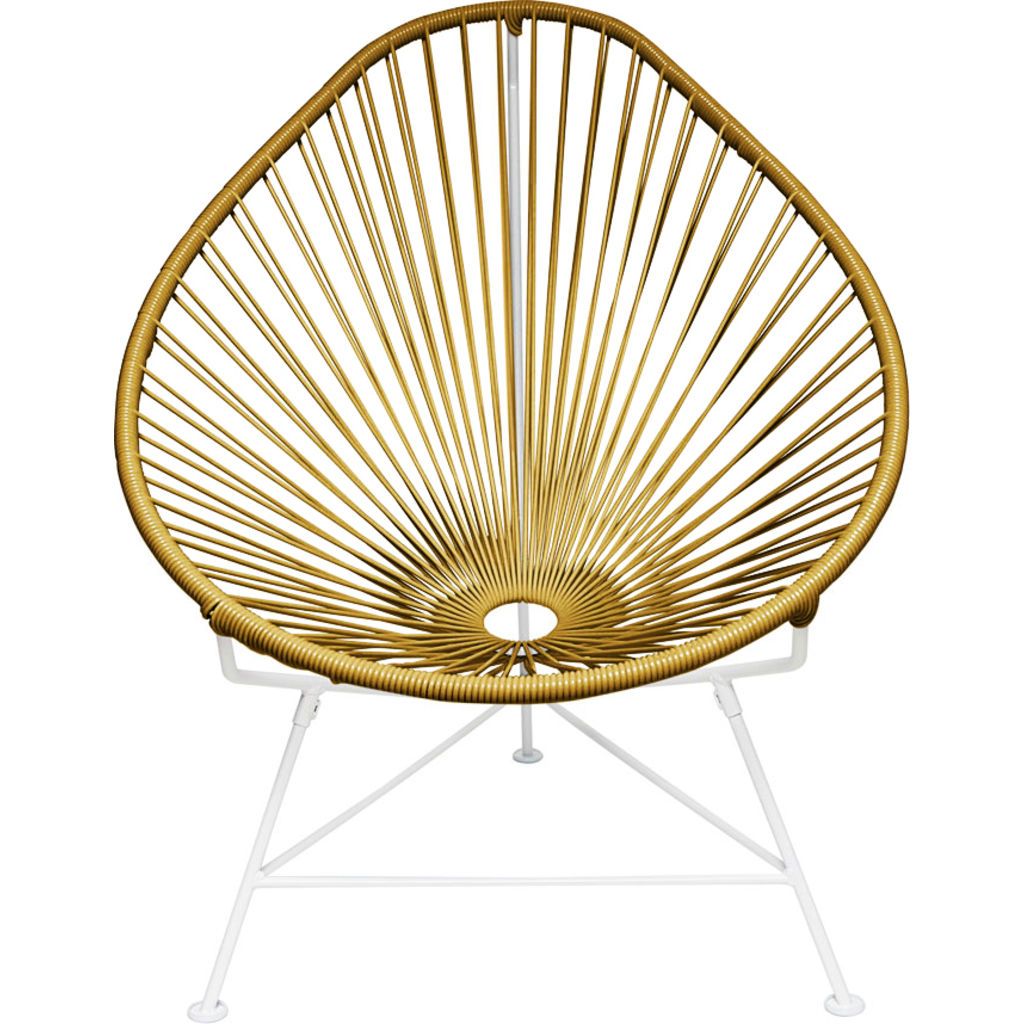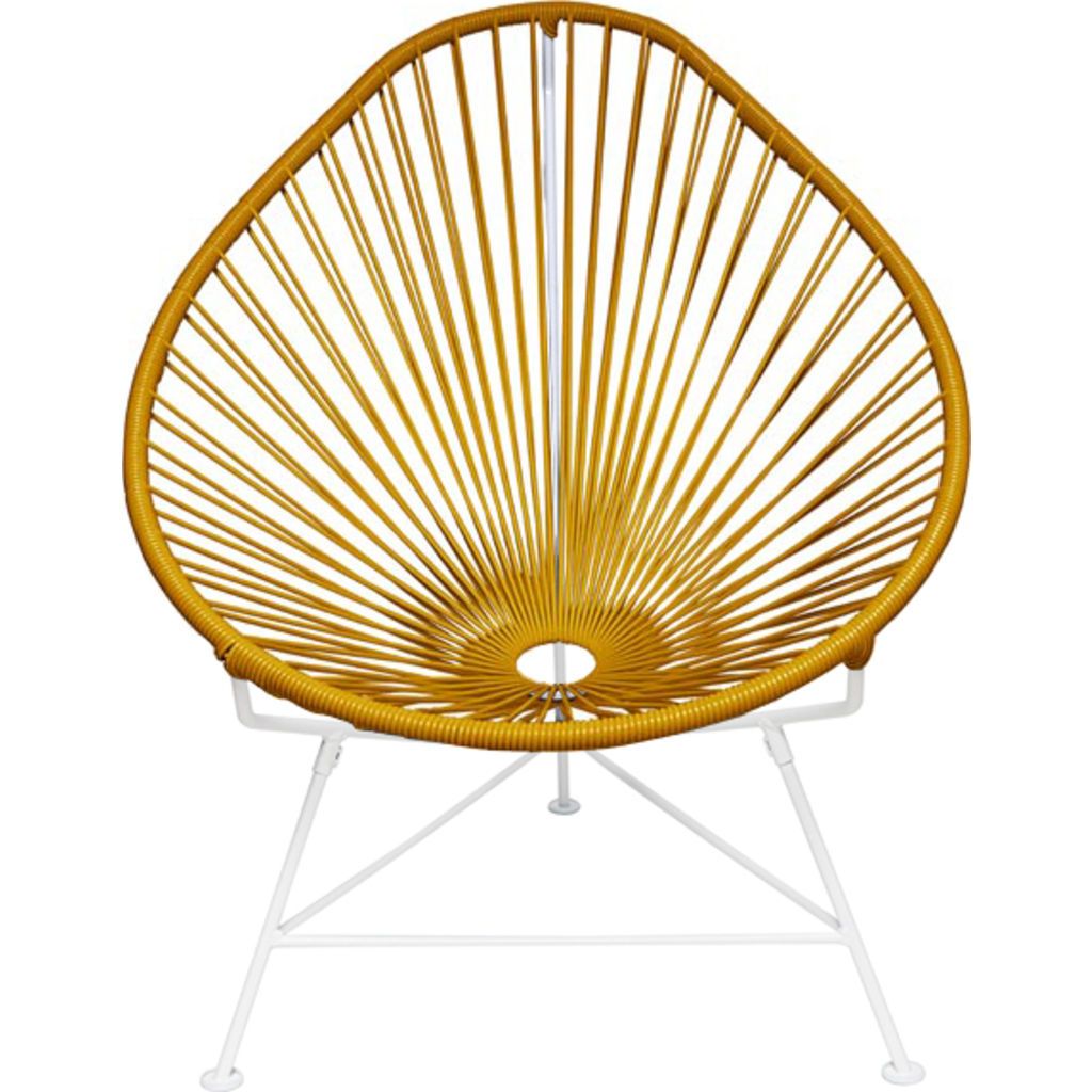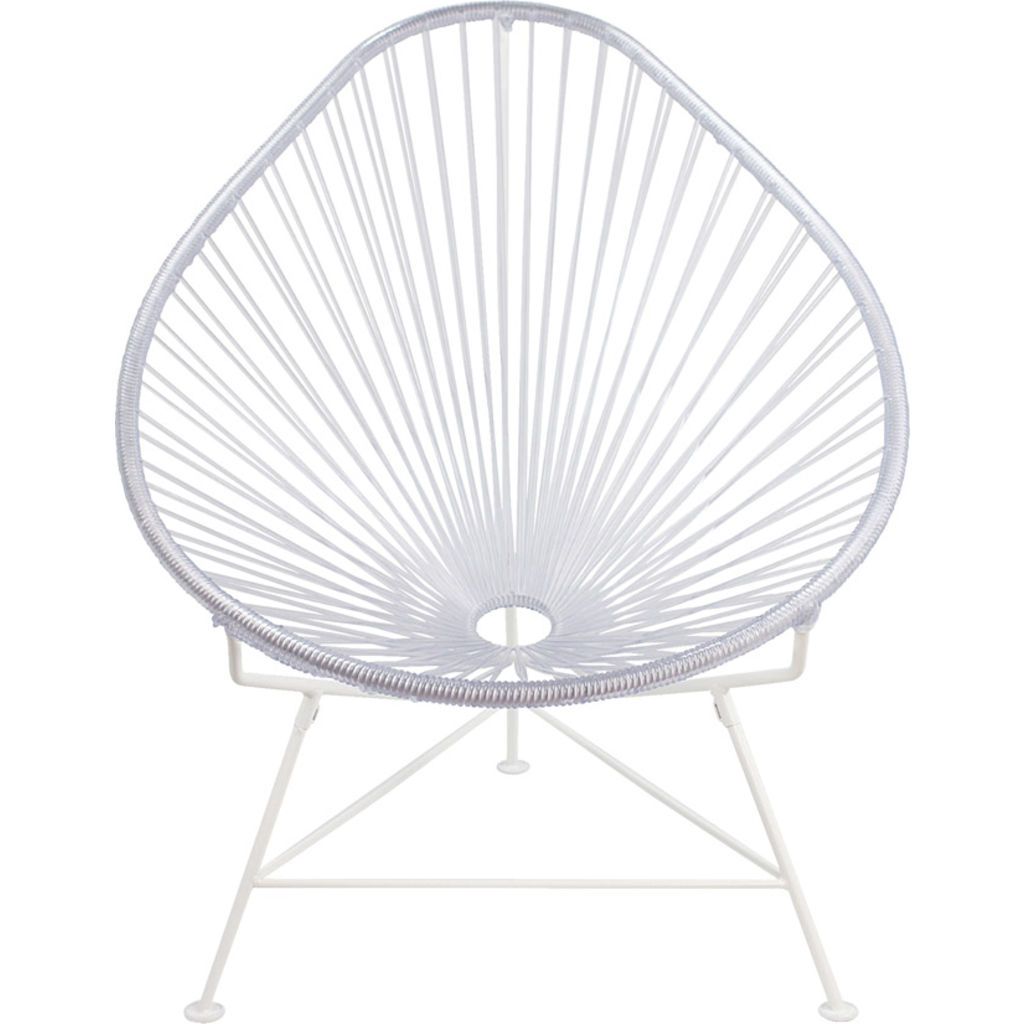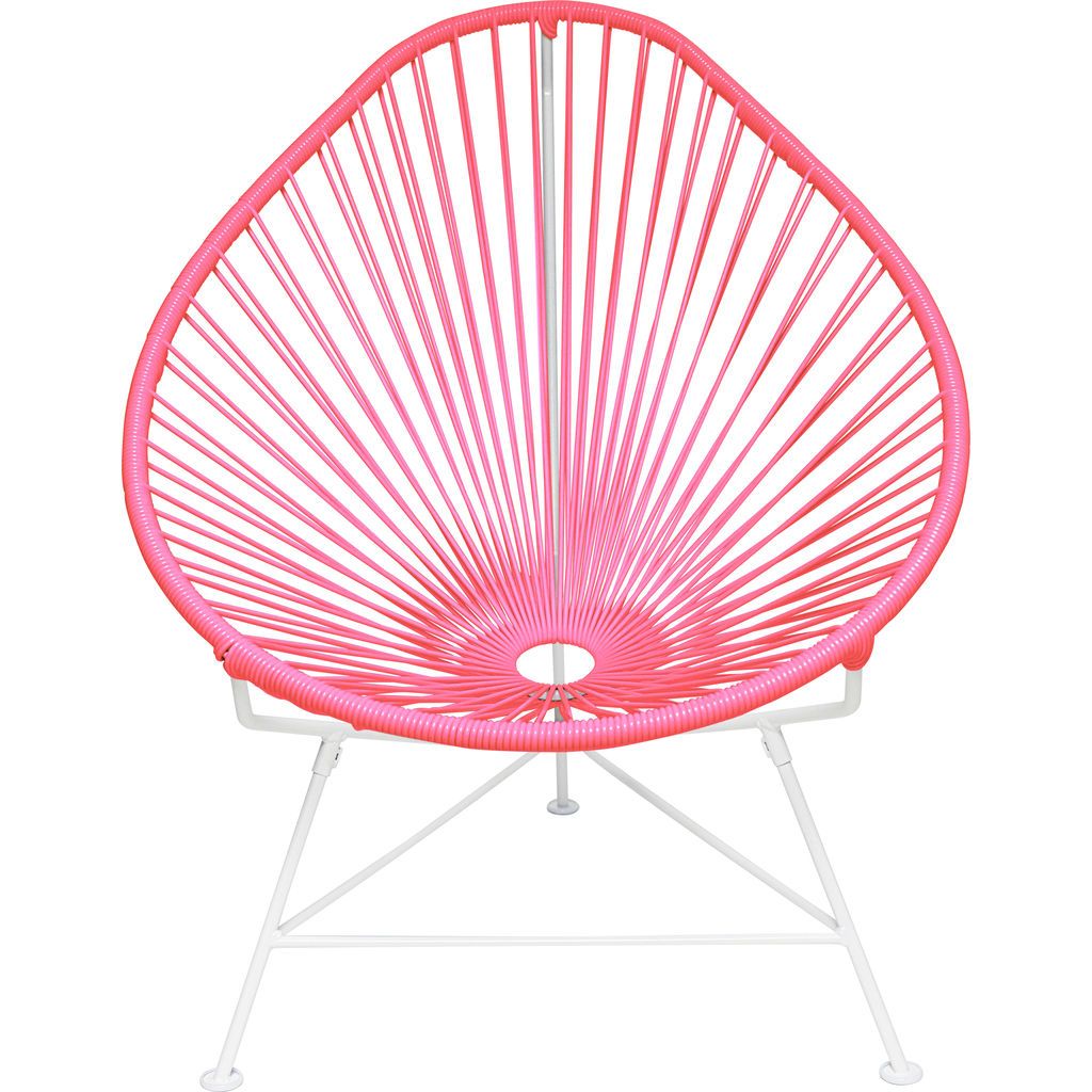 Since its introduction to the world of design in 2009, the Innit Acapulco Chair has captured the heart of home decor enthusiasts worldwide with its retro-classic aesthetic. Innit Designs created this versatile chair with a white steel frame and ivory colorfast UV-resistant vinyl cord so you can so you can lounge in style and comfort for years to come! Best of all, it's easy to clean, breathable, stackable, and suitable for both indoor and outdoor use.