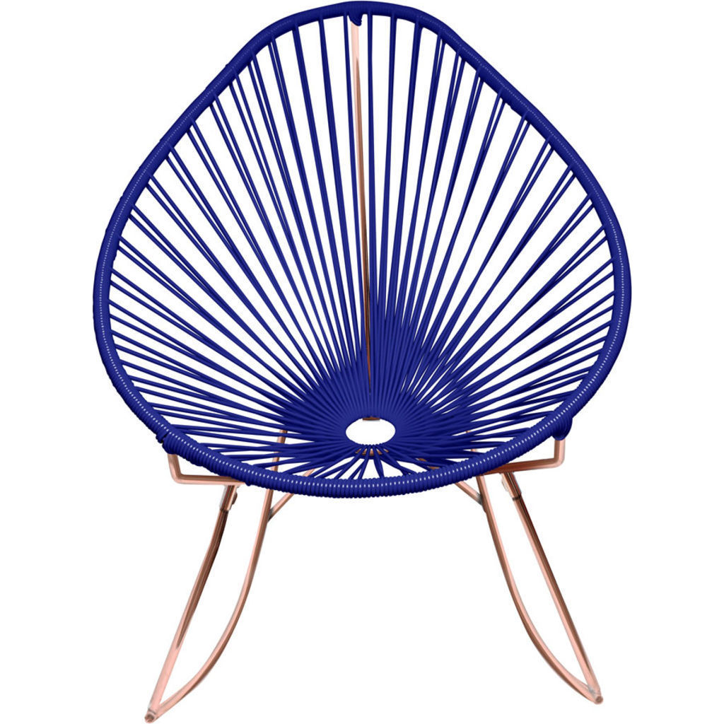 Featured in trending magazines and chic interiors worldwide, the Innit Acapulco Rocker reimagines their iconic laid-back, pear-shaped lounger with rocking chair functionality. This rocker will make a swanky statement in any living room with its mysterious blue color and zany aesthetic. Each Acapulco Chair is crafted with a copper-finished steel frame and colorfast UV-resistant vinyl cord, offering remarkable comfort with out the addition of a cushion as well as rugged durability. Completely dynamic and capable of anything; this Innit rocking chair is weatherproof, breathable, easy to clean and suitable for both indoor and outdoor use!