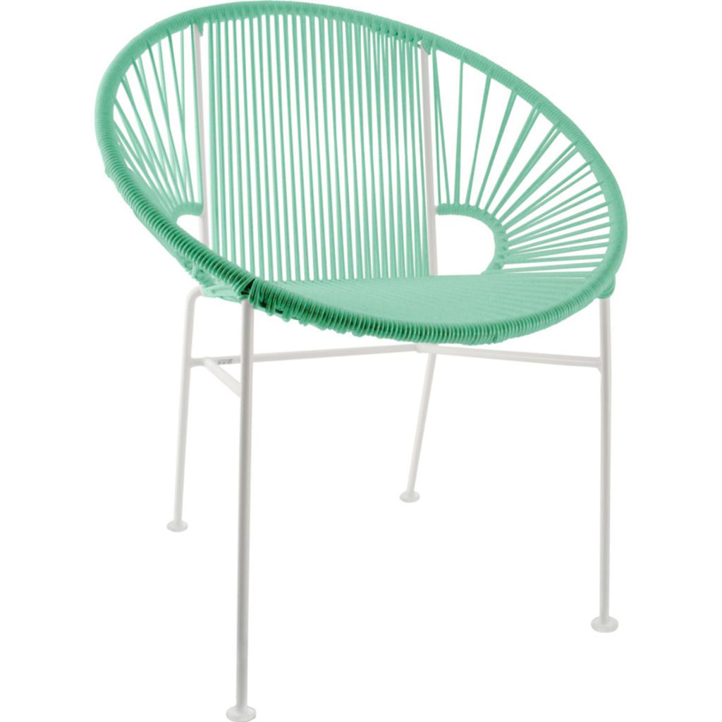 The eye-popping vinyl weave combined with the white frame makes the Concha Chair a perfect dining or café chair, it can even be used as an accent piece in your home or office. With innovative design, the unique pattern and rounded shape makes this chair is a great option for outdoor entertaining. The Concha chair from Innit Design, being handmade in Toronto Canada, brings you a Mexican inspired piece of furniture with symmetrical markings and shaped as a seashell. Bonus, this strong, colorful chair is weatherproof, breathable and easy to clean!