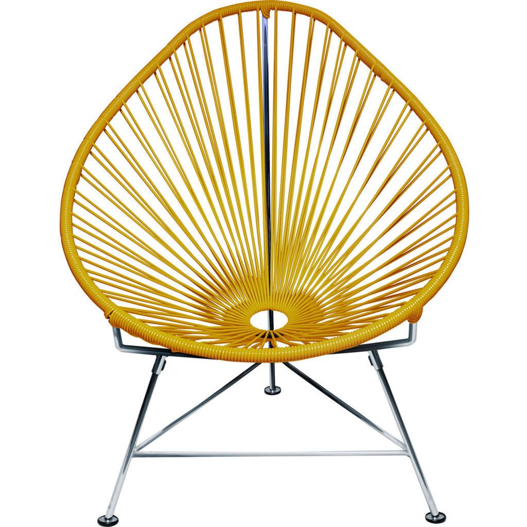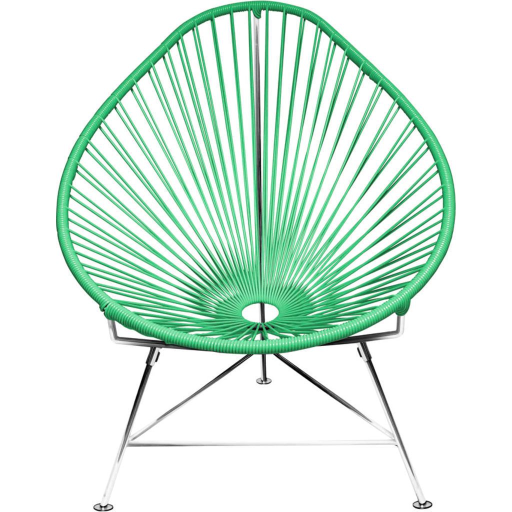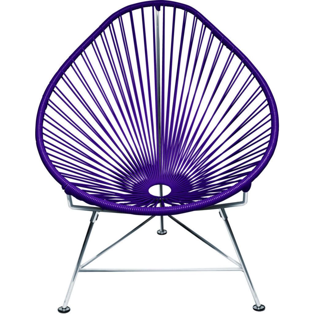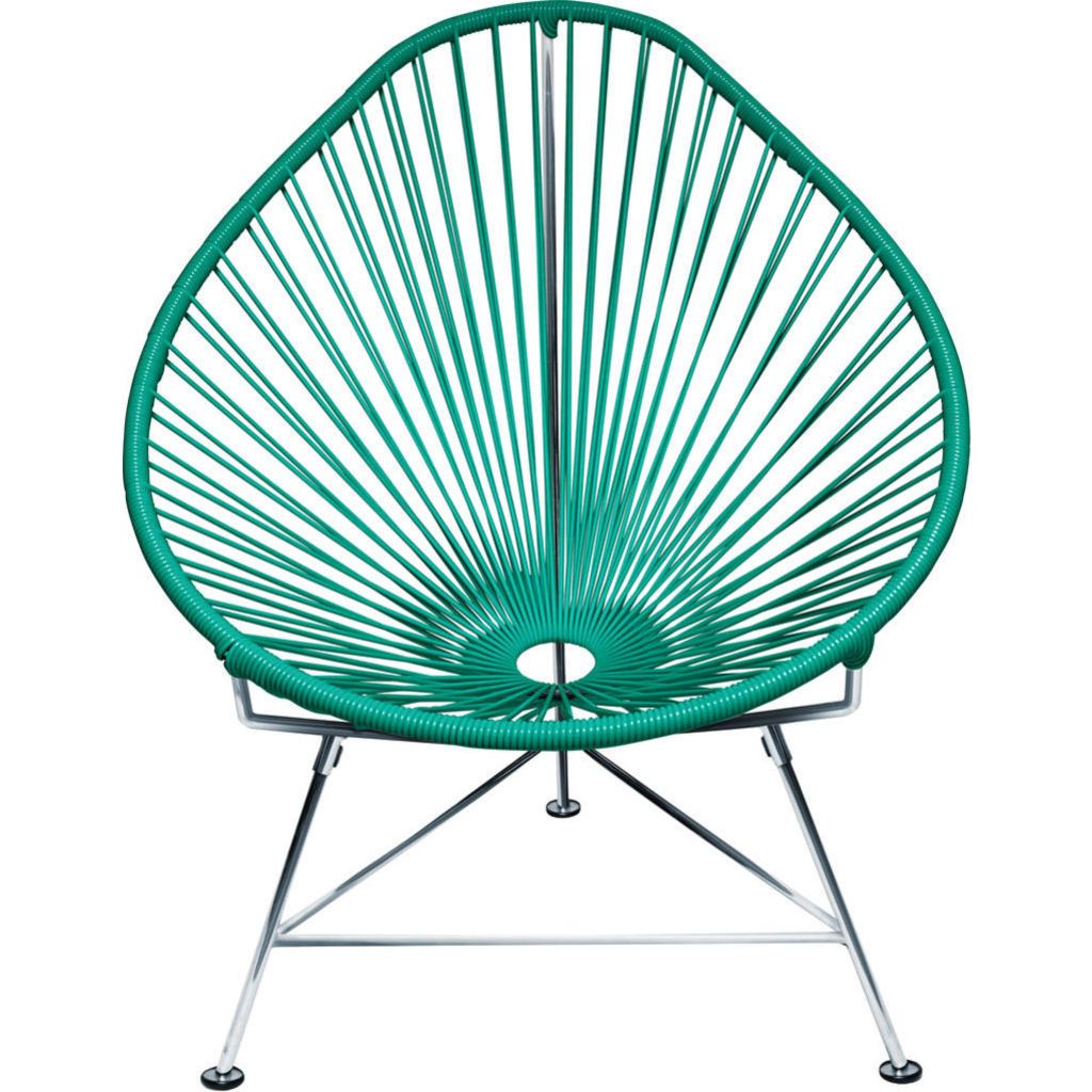 Don't let the small size fool you, the deep blue Junior Acapulco Chair is a smaller version of the Acapulco Chair and can hold up to 160 lbs. It's durable, comfortable and stylish making it great for kids rooms, smaller patios or even trips to the park. Innit Designs created this versatile chair with a chrome finished steel frame colorfast UV-resistant vinyl cord so you can enjoy this retro design indoors or outdoors. Bonus, it's easy to clean, weatherproof, breathable, and stackable.