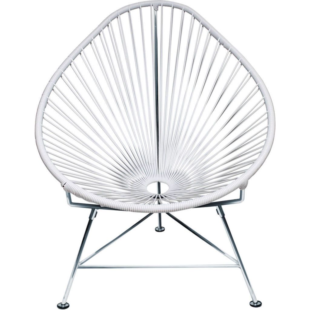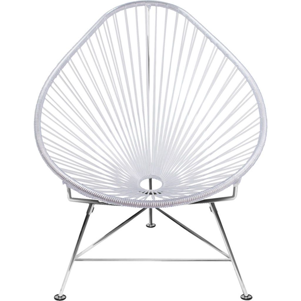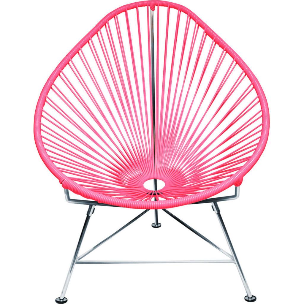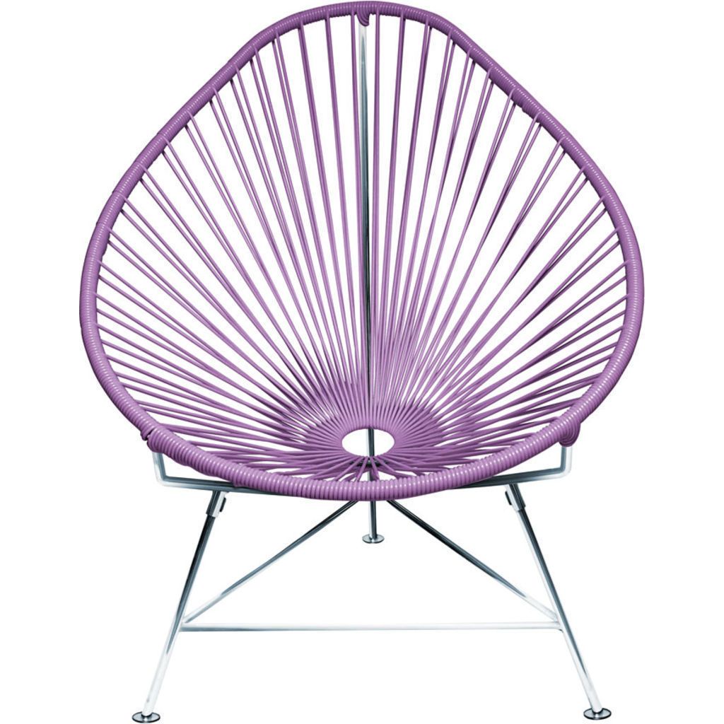 Don't let the small size fool you, the deep blue Junior Acapulco Chair is a smaller version of the Acapulco Chair and can hold up to 160 lbs. It's durable, comfortable and stylish making it great for kids rooms, smaller patios or even trips to the park. Innit Designs created this versatile chair with a chrome finished steel frame colorfast UV-resistant vinyl cord so you can enjoy this retro design indoors or outdoors. Bonus, it's easy to clean, weatherproof, breathable, and stackable.