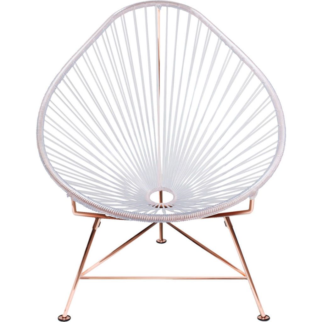 Don't let the small size fool you, the ivory Junior Acapulco Chair is a smaller version of the Acapulco Chair and can hold up to 160 lbs. It's durable, comfortable and stylish making it great for kids rooms and small spaces. Innit Designs created this versatile chair with a copper coated steel frame and colorfast UV-resistant vinyl cord so you can enjoy this retro design for years to come. Bonus, it's easy to clean, breathable, and stackable.