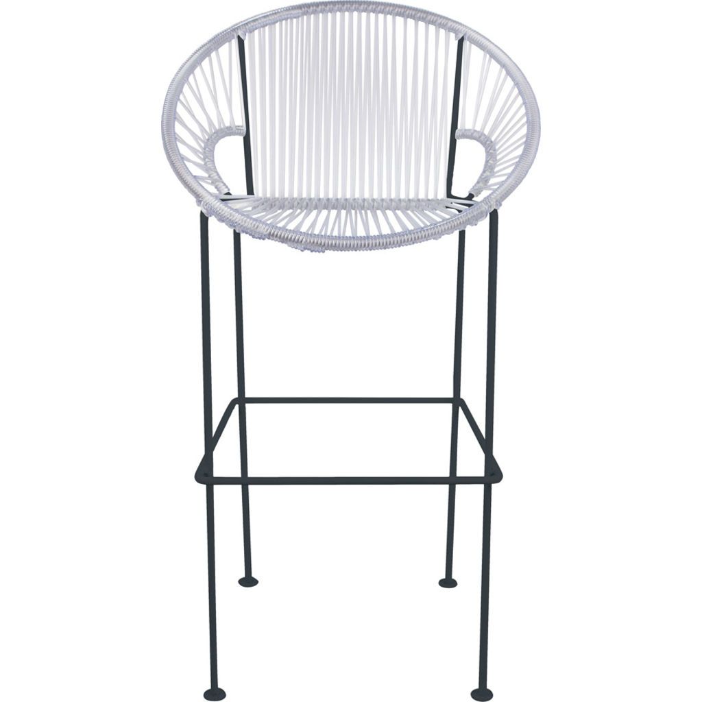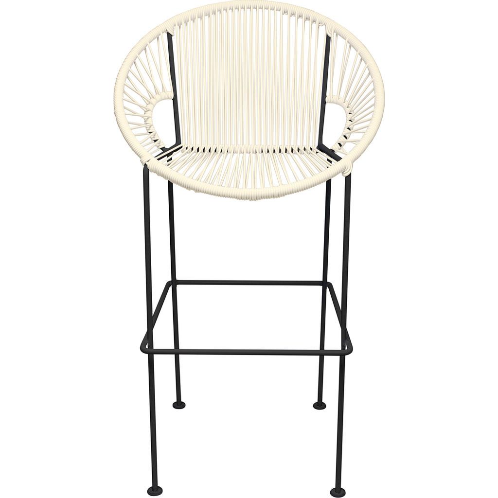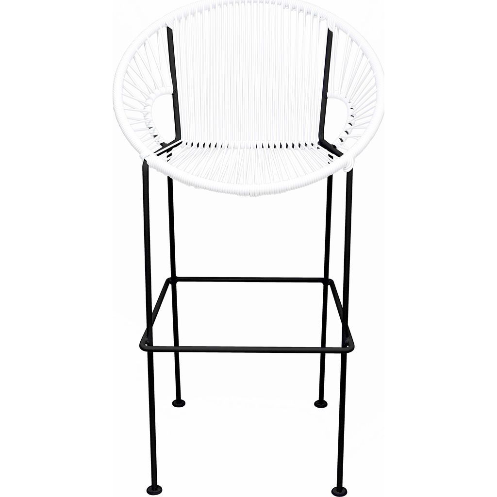 Inspired by Mexican design the Innit Designs Puerto Bar Stool chair was originally introduced in the chic Standard Hotel in Miami. It became so popular it is now a part of Innit Designs permanent collection. A great outdoor bar stool that you can use in your kitchen or on your outdoor patio. This dark blue retro classic bar height stool is comfortable, stylish and easy to clean. This modern bar stool has a back that will provide you with the support you need. Innit Designs gave the Puerto Chair a black powder coated steel frame and a deep blue colorfast UV-resistant vinyl cord so you can enjoy this retro design indoors or outdoors.