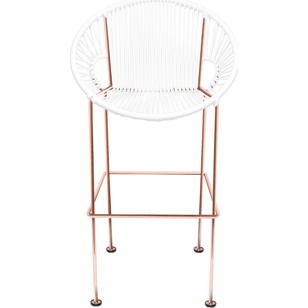 The Puerto Counter Stool, originally introduced in the chic Standard Hotel in Miami, became so popular it is now a part of Innit Designs permanent collection. This contemporary counter height stool is comfortable, stylish and easy to clean. Innit Designs gave the Puerto Chair a copper coated steel frame and a white colorfast UV-resistant vinyl cord so you can enjoy this retro design for years to come.