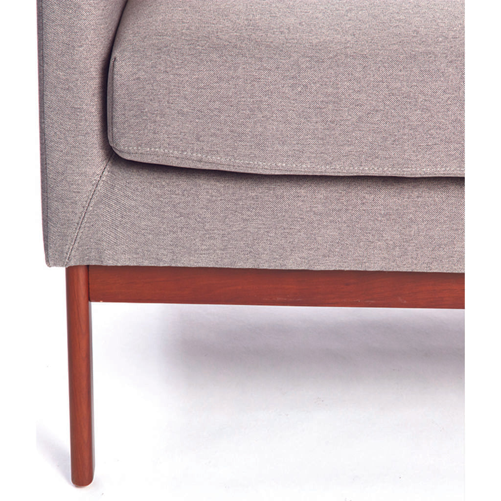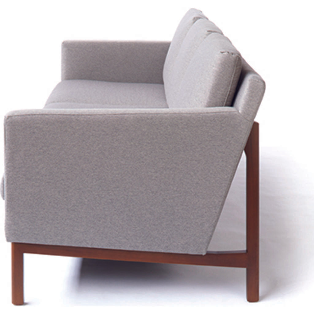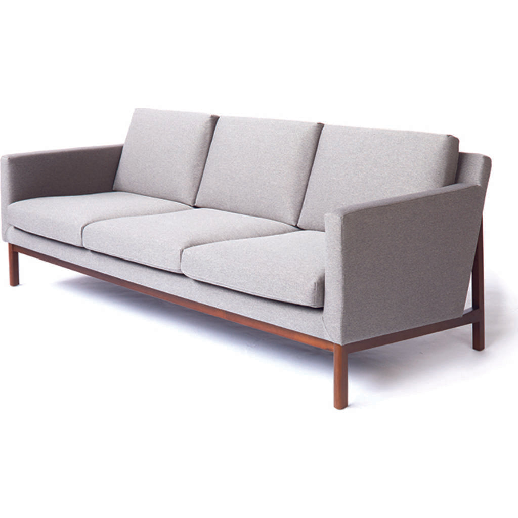 Making use of an innovative walnut wood frame with striking design details; the Strata Sofa from IONDesign Furniture draws its beauty and modern aesthetic from its ground breaking from. Combining the complex nature of geometric forms and the reserved nature of minimalism, this couch features a supple gray fabric in addition to a high density foam core.