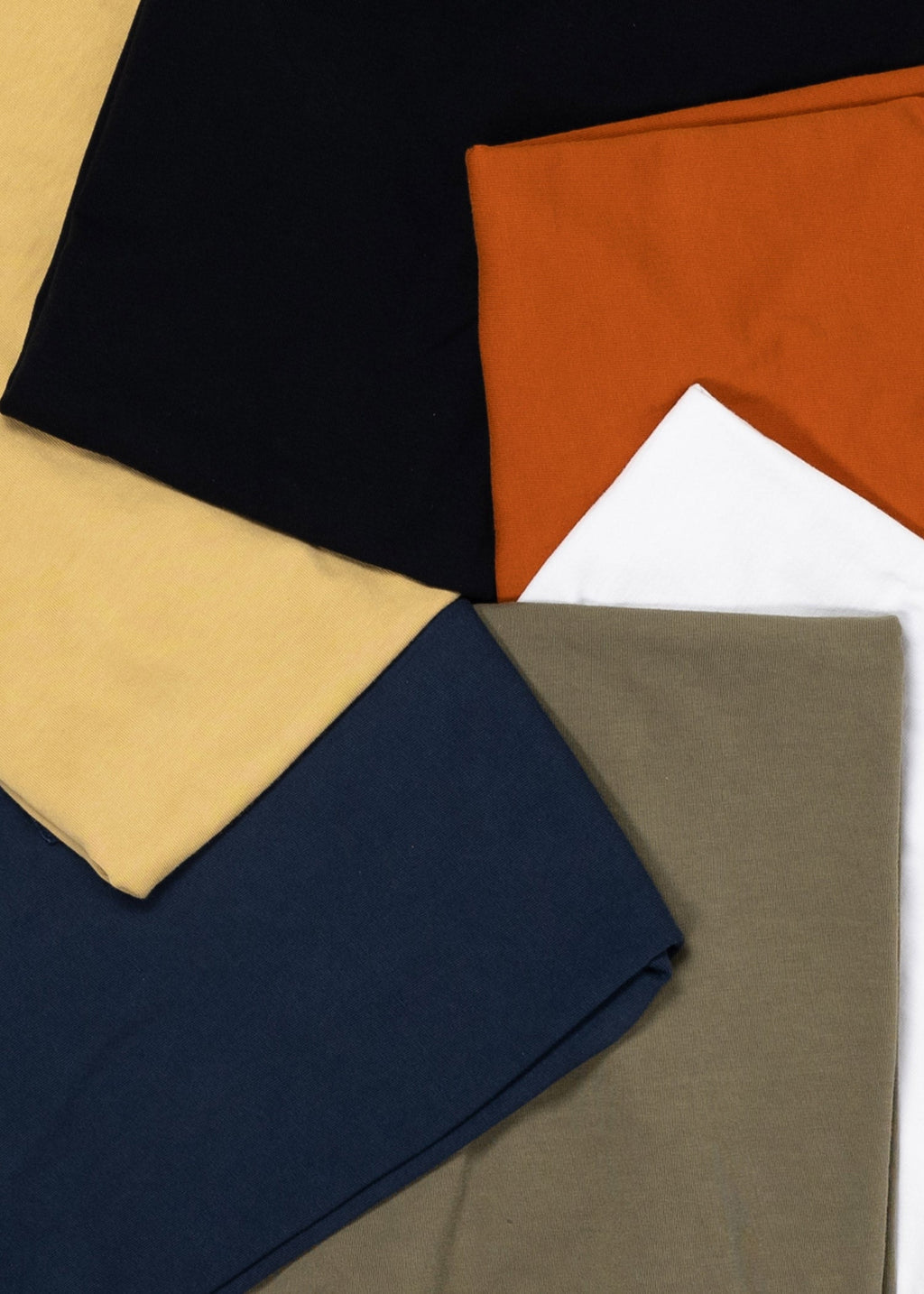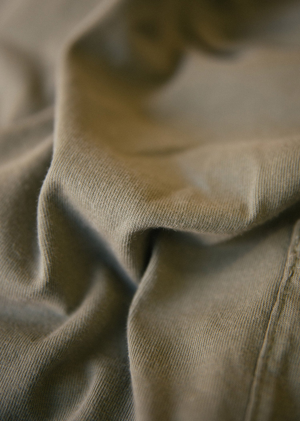 We wanted to create an everyday basic tee that was not only an extra heavyweight contender, but was also as soft as a baby's behind. We found that most extra heavyweight tees to offer an either-or kind of deal, but not both heavy and soft. To build our latest Stock Tee, we sourced the Supima - which is American-grown Pima Cotton straight from San Joaquin Valley, CA - we could find and knit it into a beefy 6oz jersey. Then had them knit, cut, sewn and garment dyed right here in California. The last step was a nice silicon wash for that super, peachy, soft feel. The left chest pocket adds the bit of utility we strive to provide in all of our clothing.