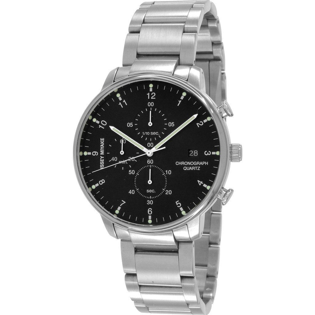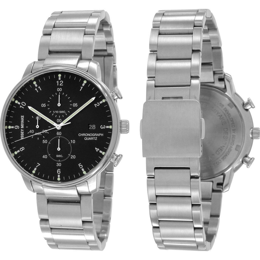 Designed by the well-renowned Ichiro Iwasaki, the C Chronograph Watch is another beautiful piece from Issey Miyake. Iwasaki highlights the purity of chronographs with this unisex watch. Made with a slim stainless steel case, this timepiece features an hour/minute/second indication as well as a stopwatch function. This black watch is finished with a stainless steel band for a classic look.