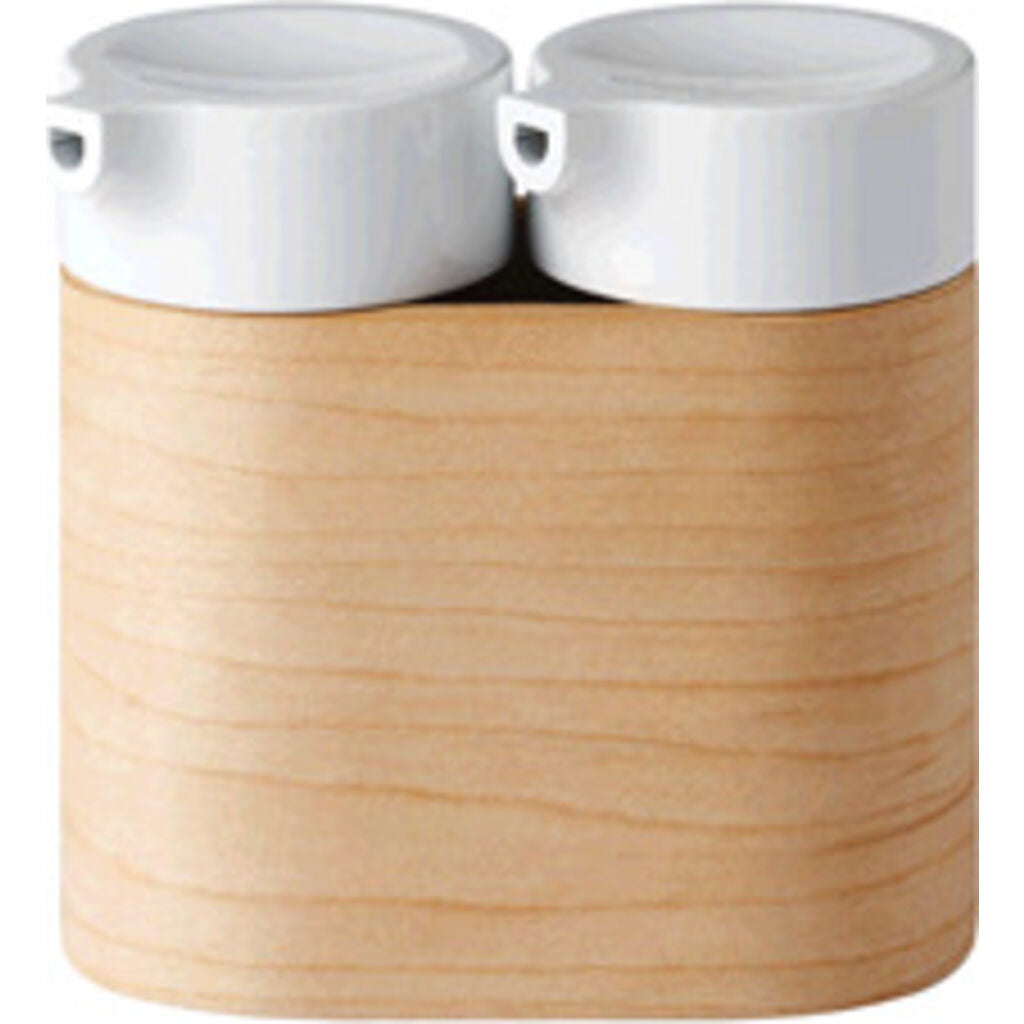 The JIA Inc Taste Set tabletop allows for a wide range of seasoning and condiments to be assembled to suit individual taste and culinary customs - Western and Asian alike. Various tops can be combined to allow for different types of condiments, including salt, pepper, oil, vinegar, chilly and spices. Hiding the transparent glass bottles in a plywood stand, the condiment set invites discovery.