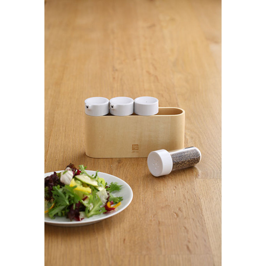 JIA Inc created the Taste western Condiment Set of 4 to help keep your table organized with a minimalist design. The different tops on the containers allow you to store many types of seasonings and condiments you need on a daily basis, it can even hold toothpicks. The rounded bottom forces the user to return the container to the stand, keeping your table clutter free. A great addition to any kitchen or dining table. JIA Inc's condiment set will look sleek on any dinning table.