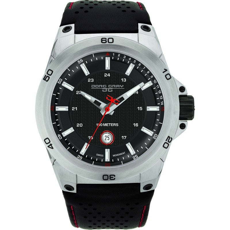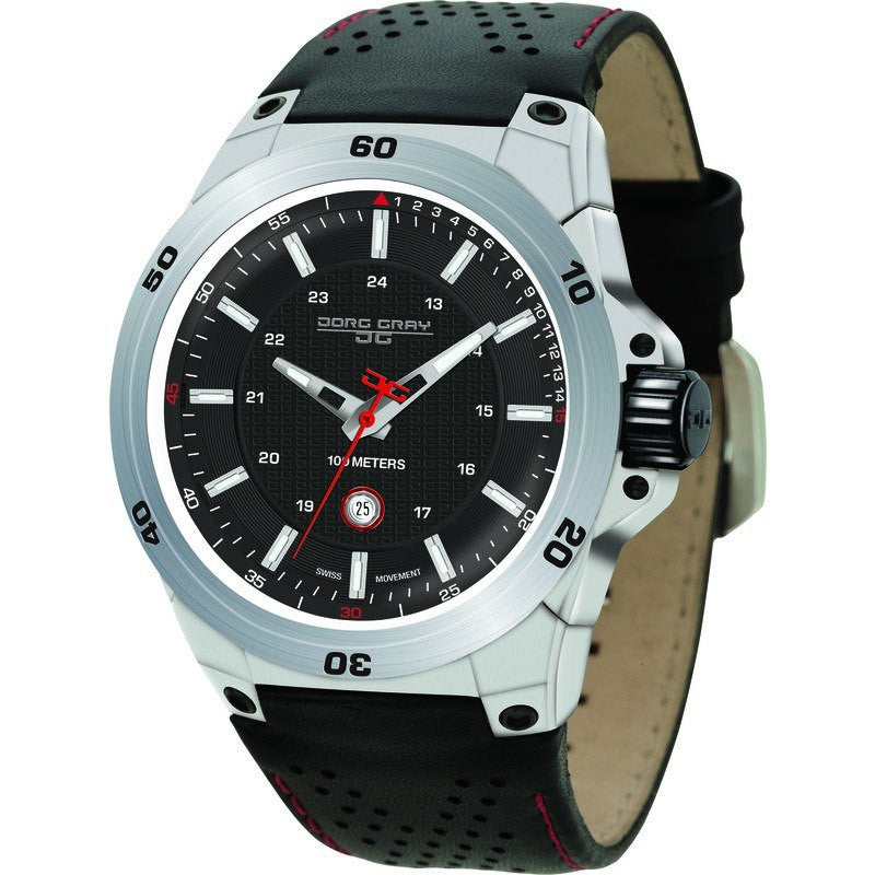 Jorg Gray designed the JG7800-11 Black Three Hand Men's Watch with rugged durability in mind. Made with the athlete in mind, this timepiece can withstand 100 meters of water resistance with a leather wrist strap that make it the perfect sports watch. Its stainless steel case with matching steel buckle and dual color layered strap, allows it to withstand the harshest of elements. On the back of this watch, markers and a date display gives the watch a distinct, unique aesthetic.