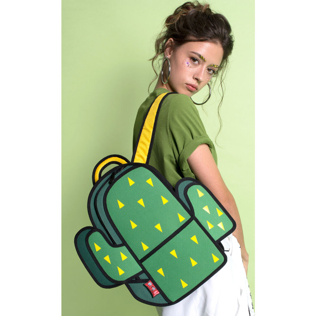 The cactus backpack is designed for pop art lovers. It comes in polyester with adjustable straps, depicting a green cactus with yellow spikes. An eye-catching take on your everyday bags and accessories. It is the new "pop" in pop culture. It is a 2D bag that unzips to become a real 3D bag. The brand plays with high design graphics and illustrations to create real-world bags that literally look as if they "jumped from paper". It has enough space for iPad, phone, and other personal items. Let's catch people's eyes by the coolest cactus of the year.