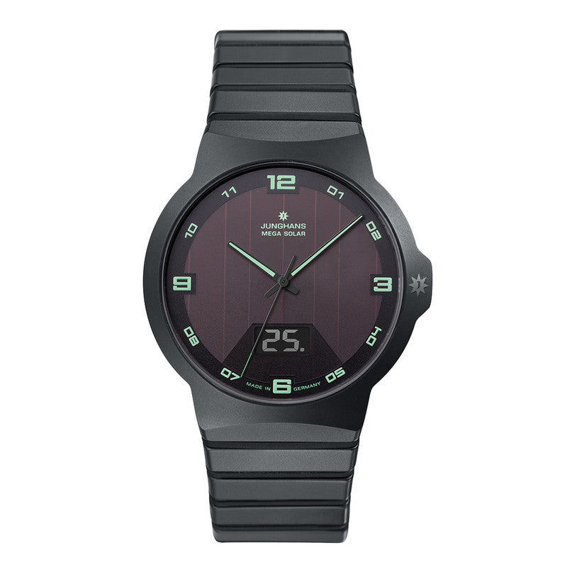 Maximum precision in classy ceramics: As well as combining radio technology with solar technology, the Force Mega Solar also incorporates the design with wear comfort and scratch resistance. With radio-controlled watches still offering the most precise time display today, this timekeeper is 100% reliable as a companion in any given situation. Adjustment is possible using the Junghans MEGA App