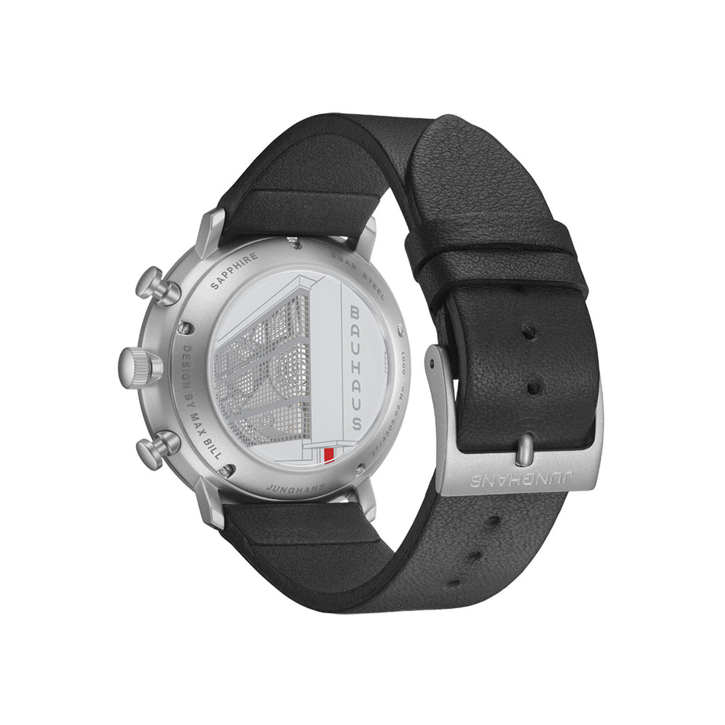 More than 100 years have now passed since the foundation of the state-owned Bauhaus. The school of thought philosophy conceived by Bauhaus scholar Max Bill lives on today in our max bill editions. Their minimalistic design ensures that they are just as relevant today as they were at the time of their conception. It is possible to view the internal movement of the watch through the windows of the Bauhaus depicted on the case back.