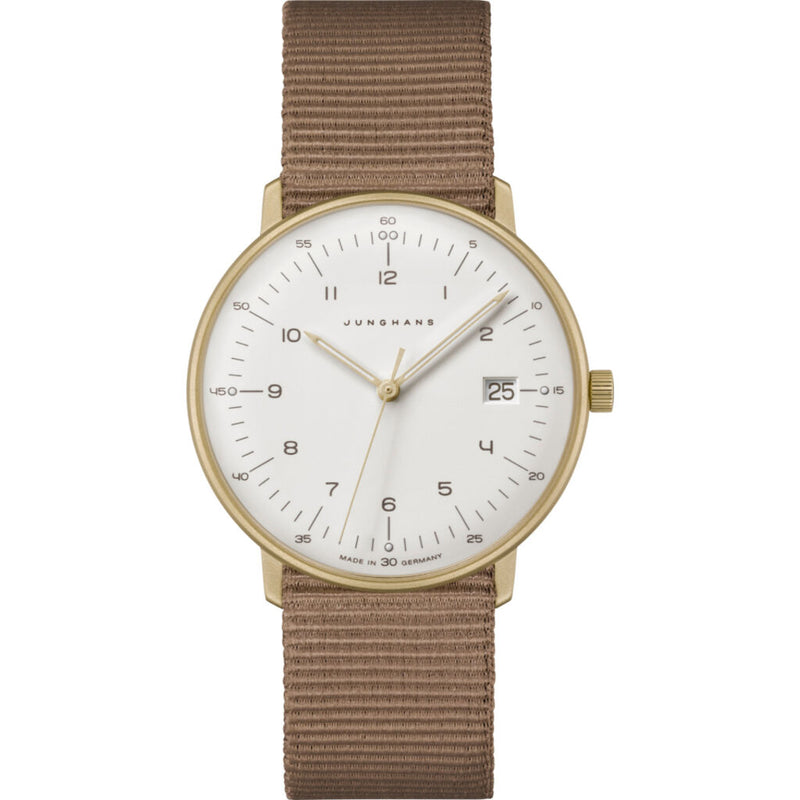 The Junghans ladies' watch is equipped with a robust and PVD-coated stainless steel case and is water-resistant to 3 bar. Hard plexiglass protects the watch. One of the highlights of the watch is the textile strap made from recycled PET bottles. A stainless steel pin buckle allows it to be easily attached to the wrist. The Bauhaus-typical minimalist design language of the Junghans max bill Ladies remains modern - yesterday, today, tomorrow, and the day after tomorrow!