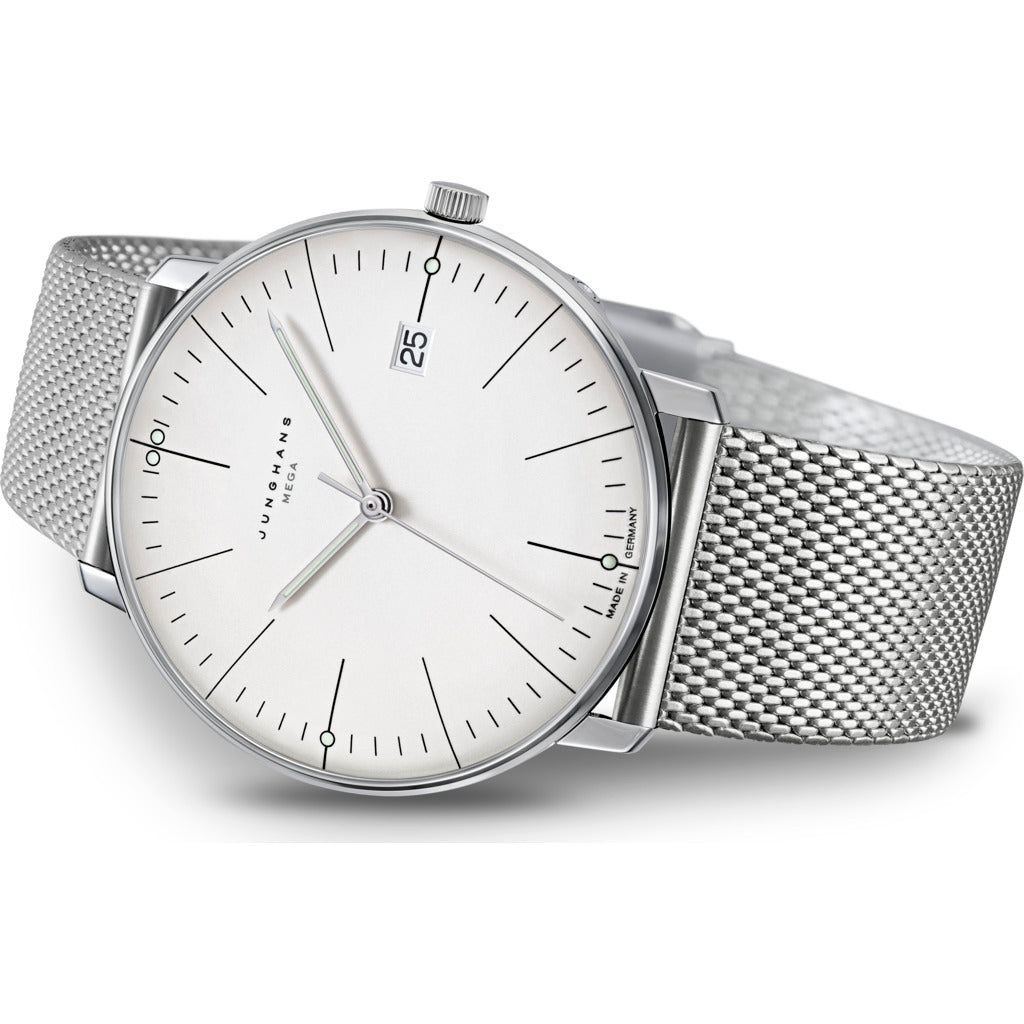 - FUNCTION: Date, convenient time setting via the crown or Junghans MEGA App, precise second display in half-second steps