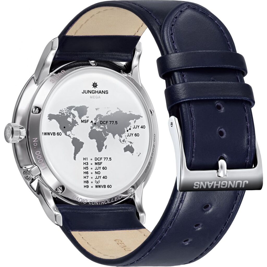 Junghans Watch Meister Mega Kleine Sekunde 058/4901.00. The Meister label has stood for classic watchmaking at Junghans since 1936. In keeping with this tradition, the present-day Meister watches are characterised by a passion for precision and a distinctive awareness of quality. The latest generation of radio-controlled watches represents a further milestone. The Meister Mega unites traditional design with precise technology. A unique combination of design, style and accuracy. This watch puts your outfits on another level with remarkable sophistication and a design so crisp that you cannot stop admiring. A very midnight blue finish completes both the dial and luxury leather strap in a tone that shimmers deeply and distinctively. Beneath the surface, a radio-controlled movement keeps track of time and adjusts as you go, making the desirability and convenience another notch higher. Features a date display, isolated second hand and radio-controlled movement.