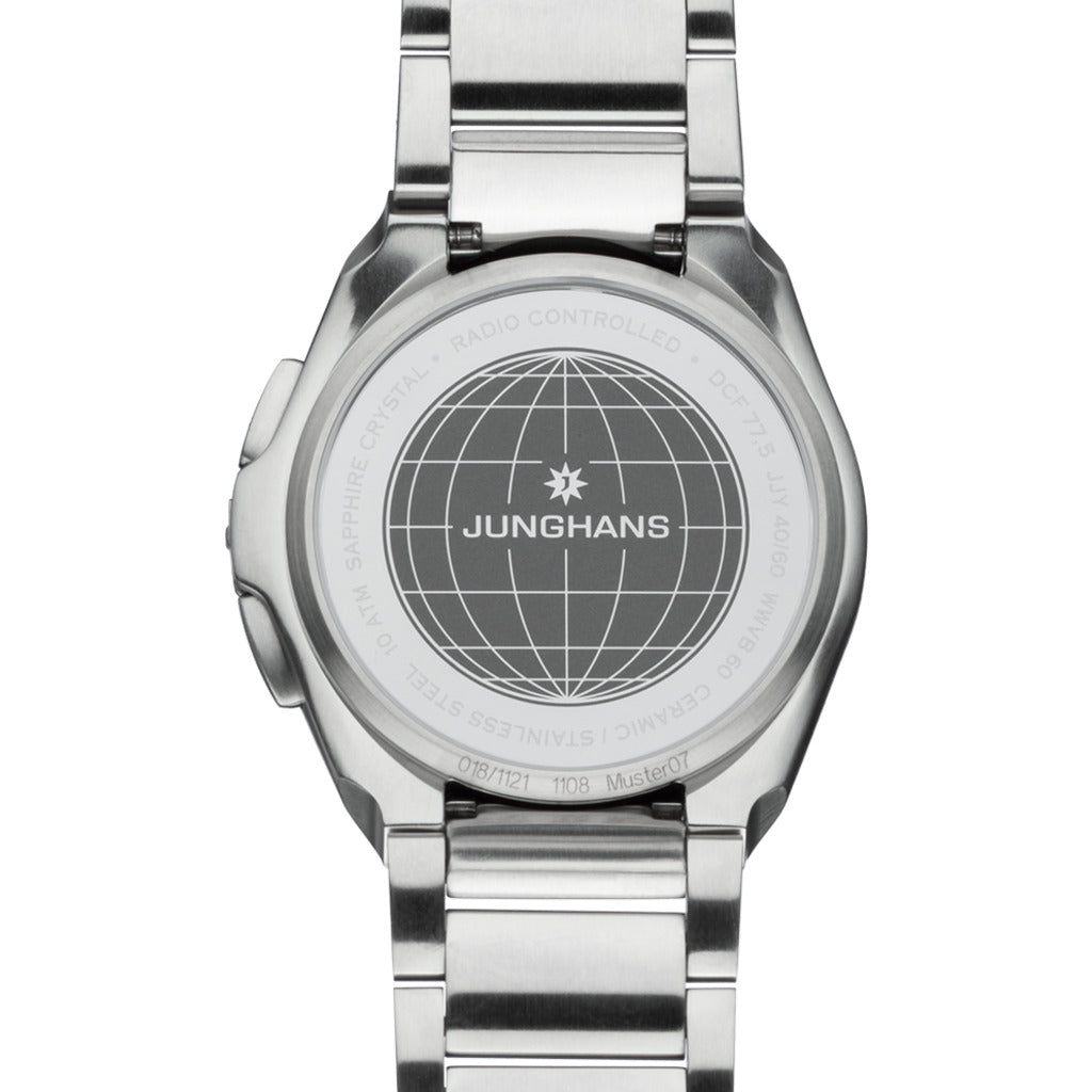 Cool stainless steel, scratch-resistant ceramic and water resistance up to 10 bar make the Spektrum Mega Solar our sportiest radio-controlled watch. The interior of the Junghans multi-frequency radio mechanism is powered by the energy of the sun. In this way, the Spektrum Mega Solar proves not only to be particularly precise, but also to be a particularly resource-saving timepiece.