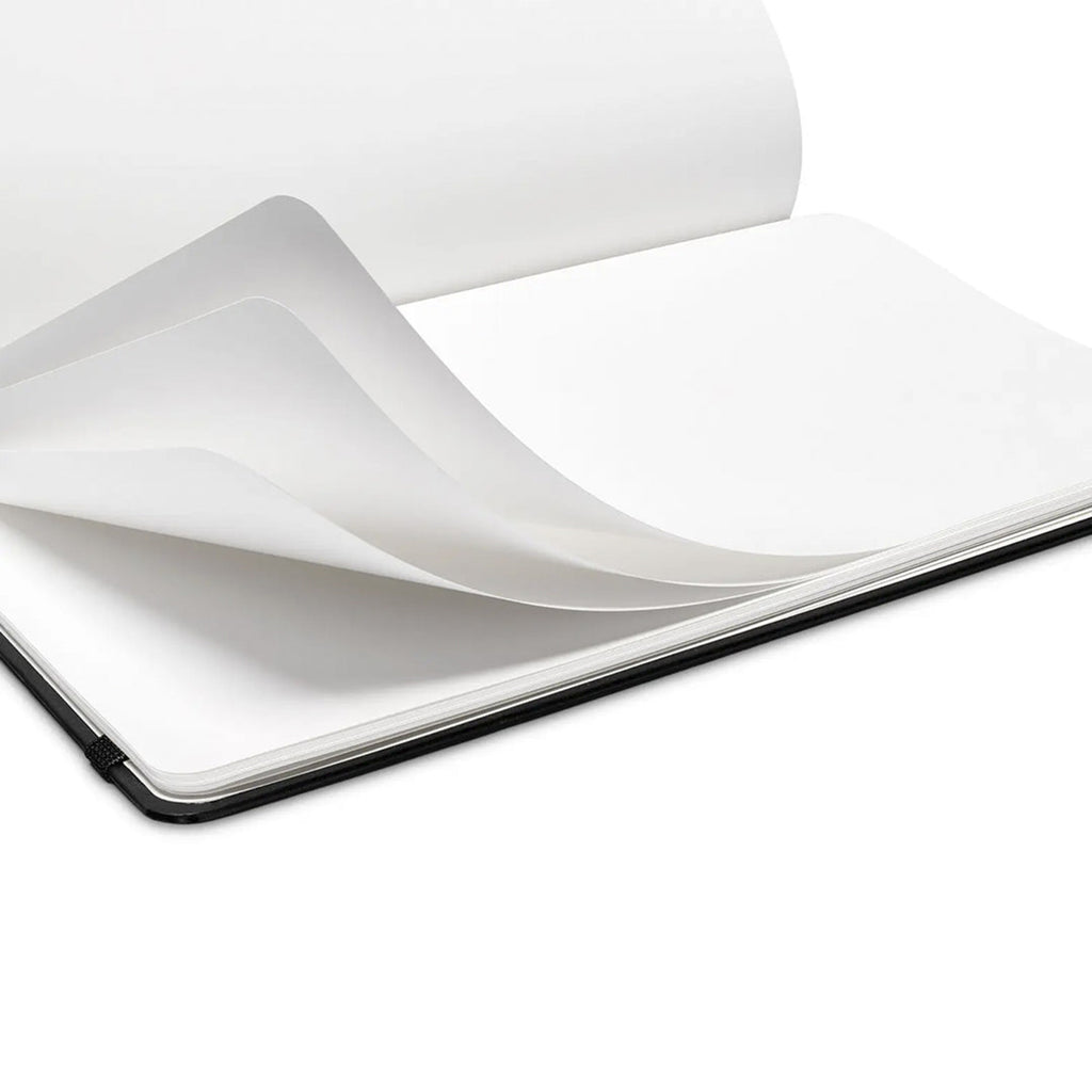 This A5 hardcover sketchbook is perfect bound, laying flat for drawing and sketching at any angle. Each sheet is made from our durable and water-resistant stone paper, allowing you to use any medium, wet or dry. With pages twice as thick as our notebooks, the buttery, mesmerising feeling of scribbling and drawing in this sketchbook is twice as satisfying. 96 blank pages, lay flat binding, waterproof cover and pages, suitable for wet and dry mediums, divider ribbon, black elastic closure band.