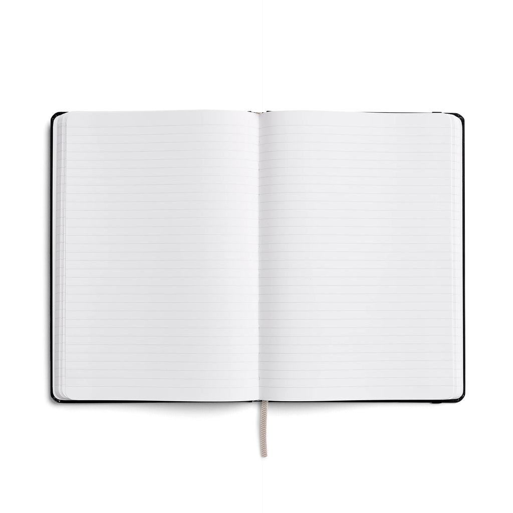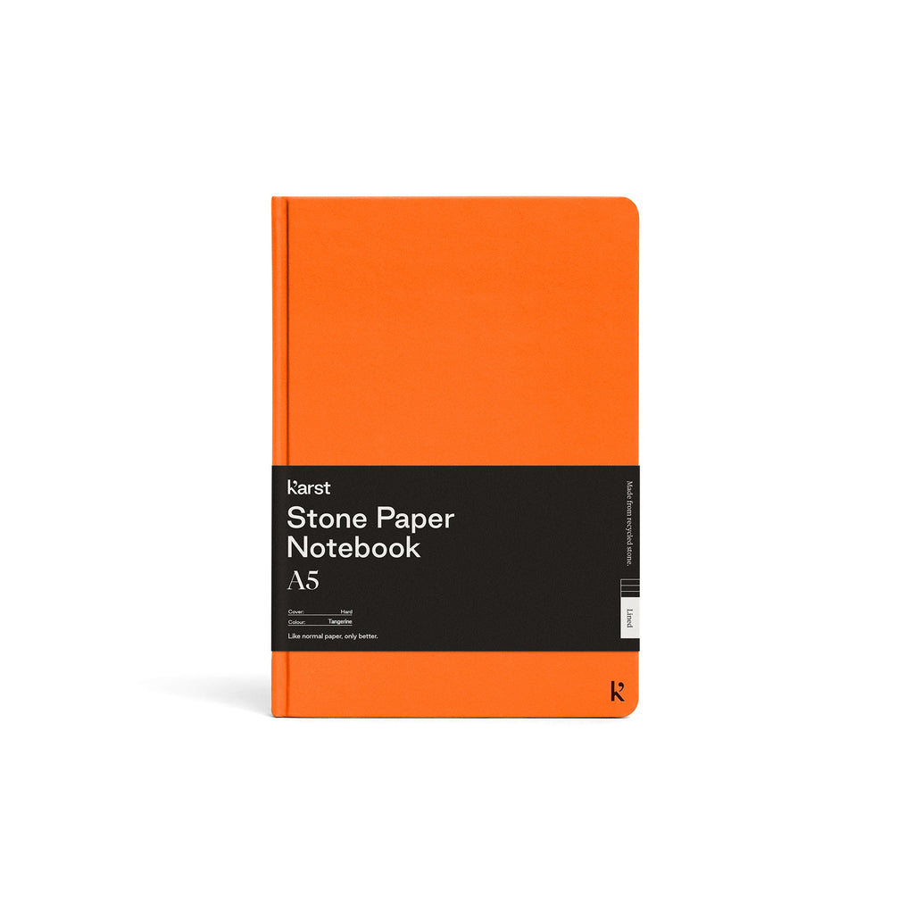 Best seller and crowd-pleaser. This tree-free A5 Hardcover Notebook is made from high-quality, sustainable, and recyclable stone paper. Thoughtfully designed with an expandable back pocket for extra storage, a divider ribbon that doubles as a bookmark for easy reference, and lay-flat binding for comfortable writing. An ideal choice for anyone looking for a premium notebook that stands out in both form and function. 144 lined pages, lay flat binding, waterproof cover and pages, color matched elastic closure band and divider ribbon, back cover storage pocket.