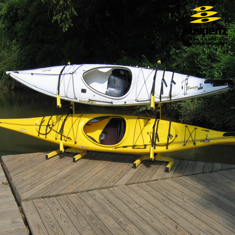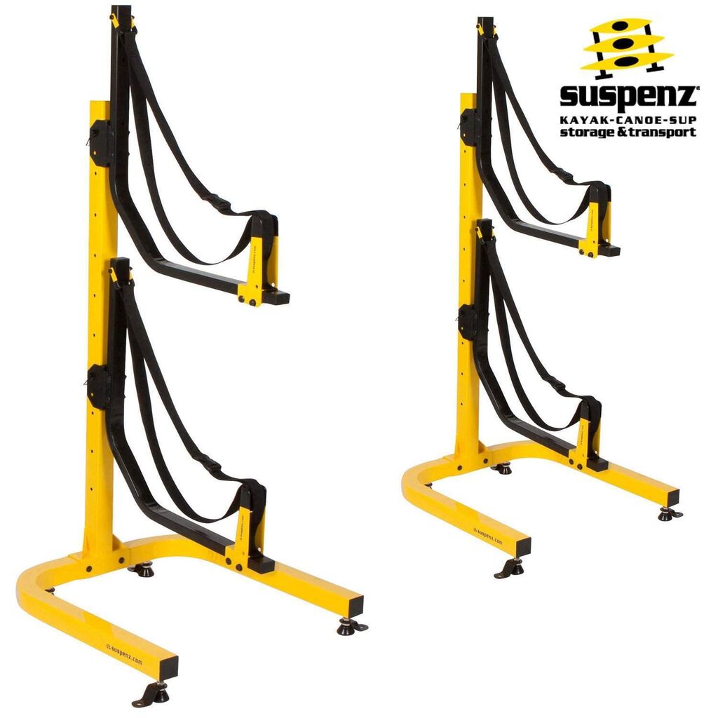 The original, patented "load-assist" & adjustable pivot arm design for easy single-person loading and unloading up to two Kayaks, Canoes, Fishing Kayaks, and Cargo Boxes! Paddling sports experts agree the best way to store your boat is suspended on straps that conform to the hull. This is the philosophy upon which Suspenz designed our premium Suspension Strap System featured in the Founders Series.