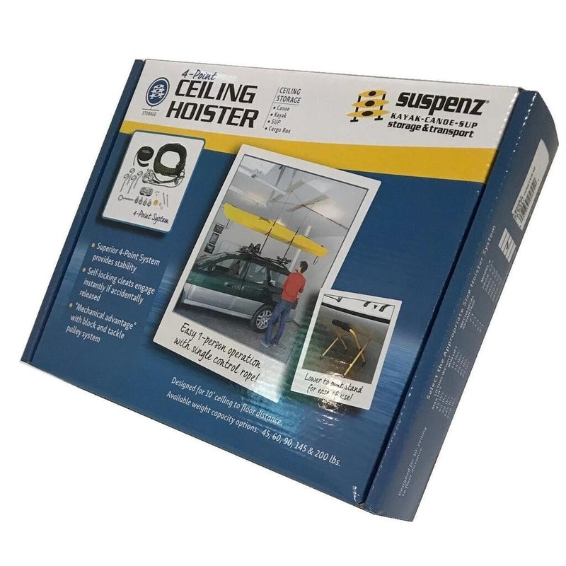 Kayak pulley storage is available in five weight capacities: 45 lbs, 60 lbs, 90 lbs, 145 lbs, and 200 lbs