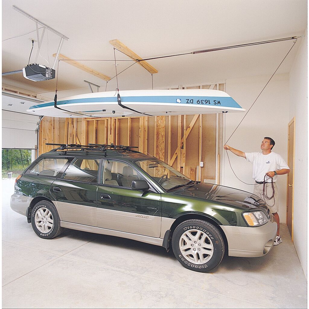 - This kayak garage hoist includes stainless steel precision pulleys and hardware.