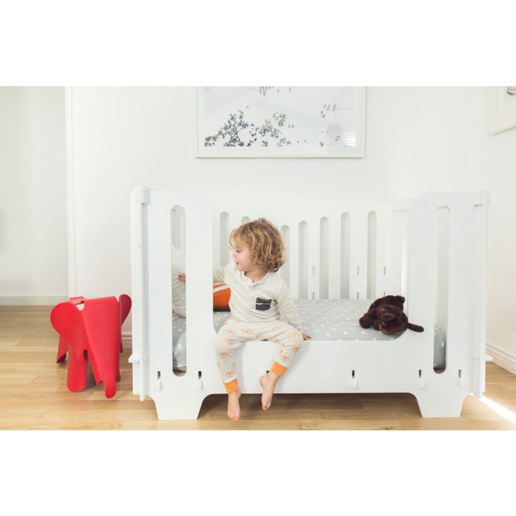 The noninoni kids Noni Toddler Transistion Bundle comes in Mint, Natural and White. It will grow with your child! This crib is sturdy enough and comfortable enough for everyday use. And once your child is ready for a bed you can transition them to it using the toddler rail. Bonus, it is also convenient for traveling and for the keeping at a grandparents house. It packs flat so you can easily fit it under a bed. The best part is that you do not need a single tool or piece of hardware to assemble it! You will be able to put together this crib in a matter of minutes with ease! There are 3 different adjustable mattress positions to fit your babies needs. Carefully designed and crafted in the United States using sustainable FSC Certified Baltic Birch plywood. Your baby will sleep safe and sound in this unique crib!