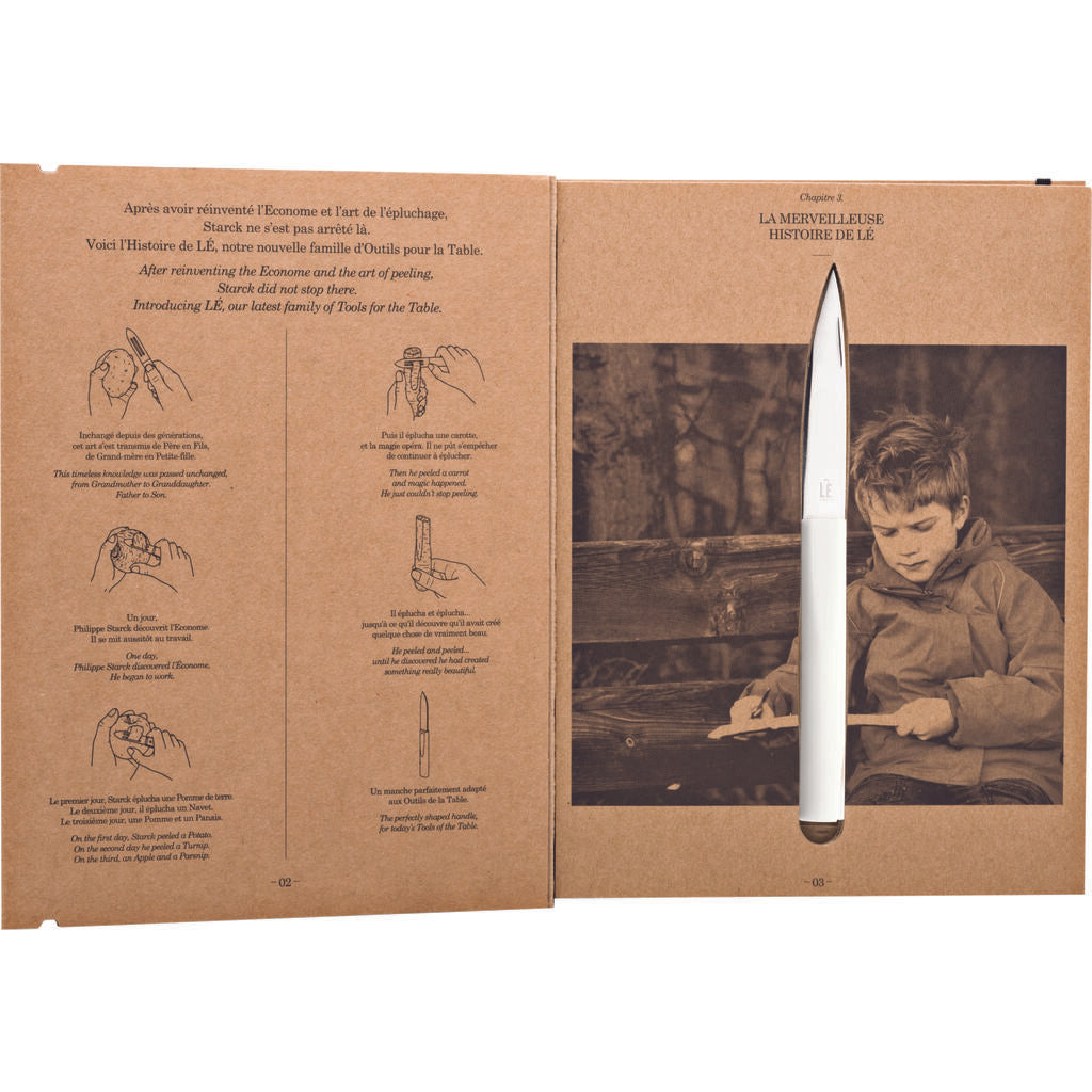 The L'Econome BY Starck Collection proposes a Cleverly Designed Folding Knife which fits in any pocket and a sharp Hollow Handle Dinner Knife. These Knives offer high quality Steel and resistance, essential companions for any gourmet excursion.