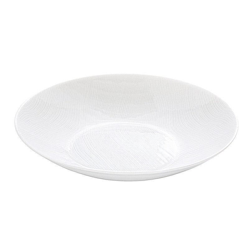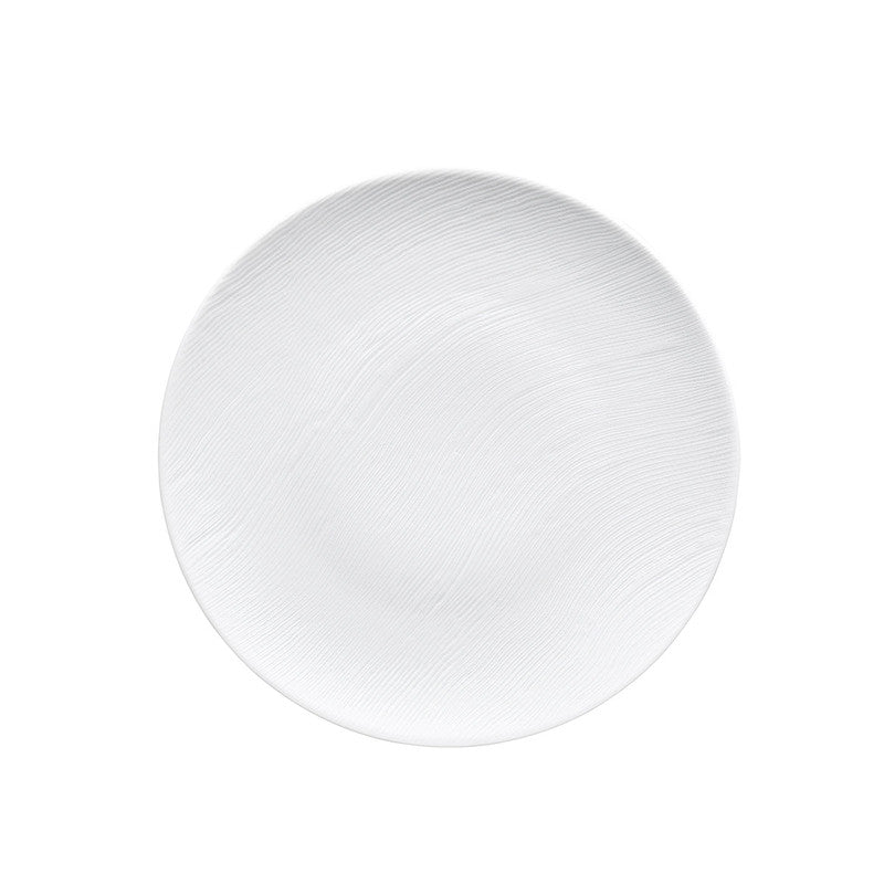 Elegant French Design: Inspired by the natural beauty of the coast, the Rivage Blanc collection by DEGRENNE features a textured white porcelain design reminiscent of waves and sand ripples.