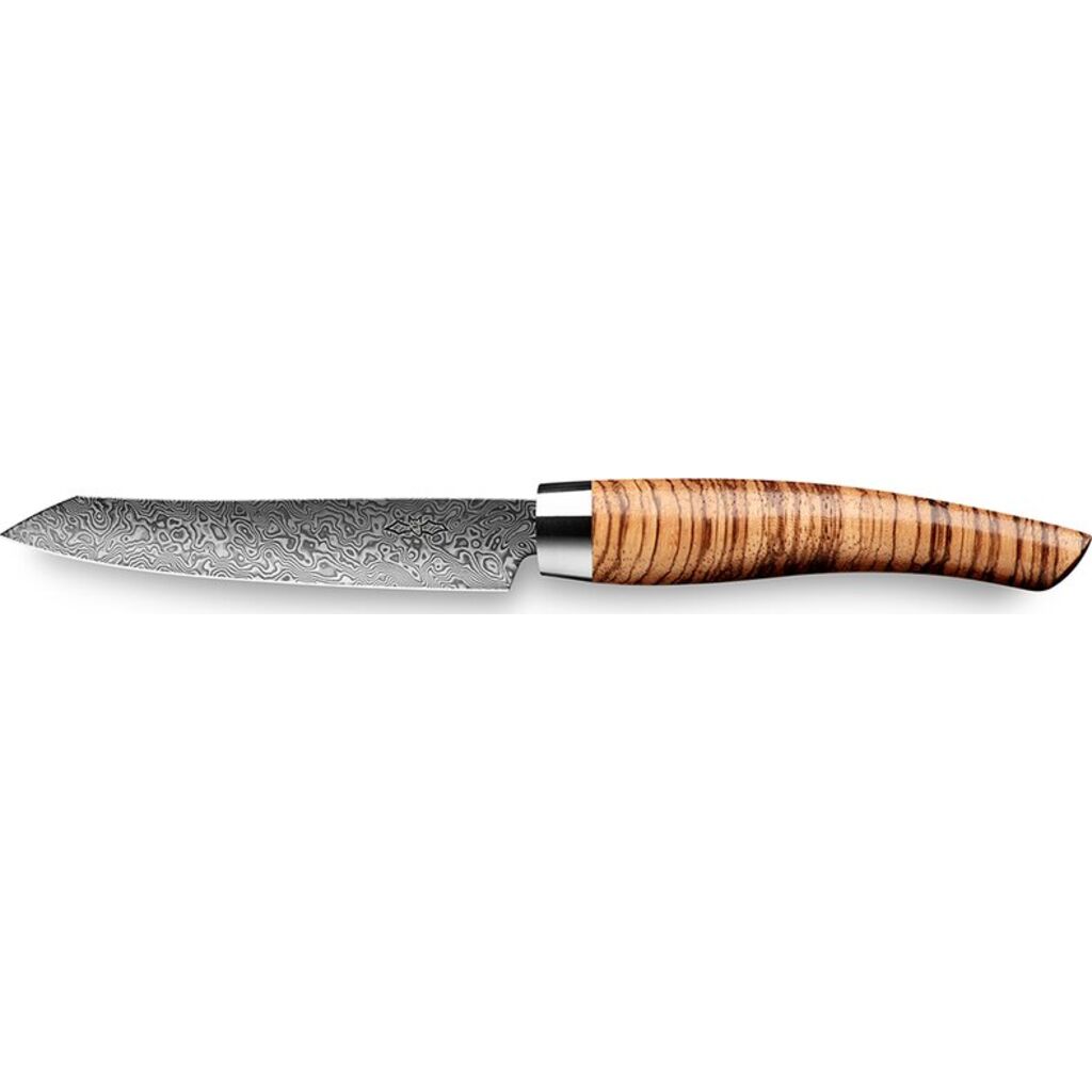 Handmade damascus steel made from the best carbon steels, corrosion-resistant thanks to an innovative silicon coating. For absolute cutting performance without compromise.