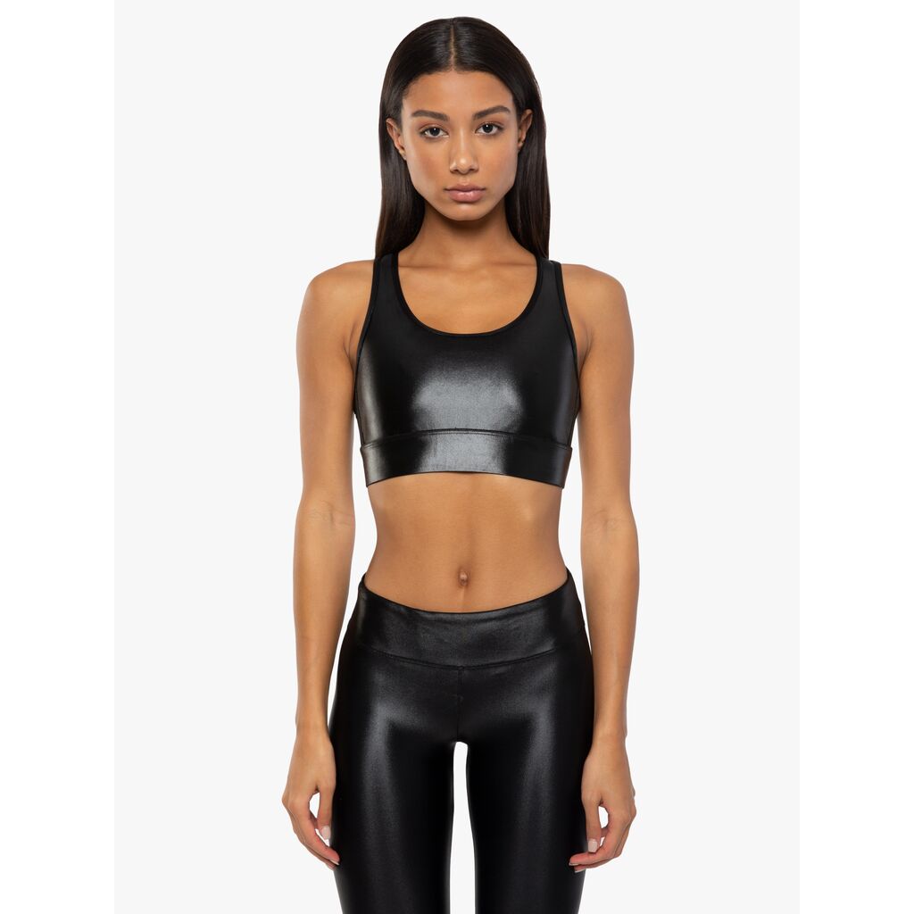 Full coverage sports bra cut from our shiny, signature Infinity fabric. Wide bottom band for extra comfort and support.