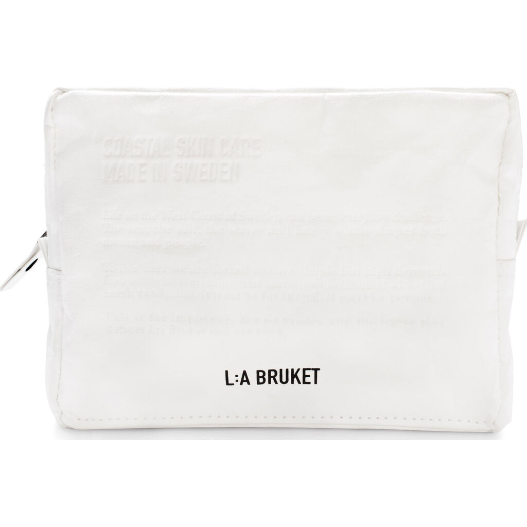 L:A Bruket No 176 Toilet Bag made of the unique paper material jacron with an embossed print and machine washable up to 40 C°. The perfect companion on a journey or as a detail on the bathroom shelf.