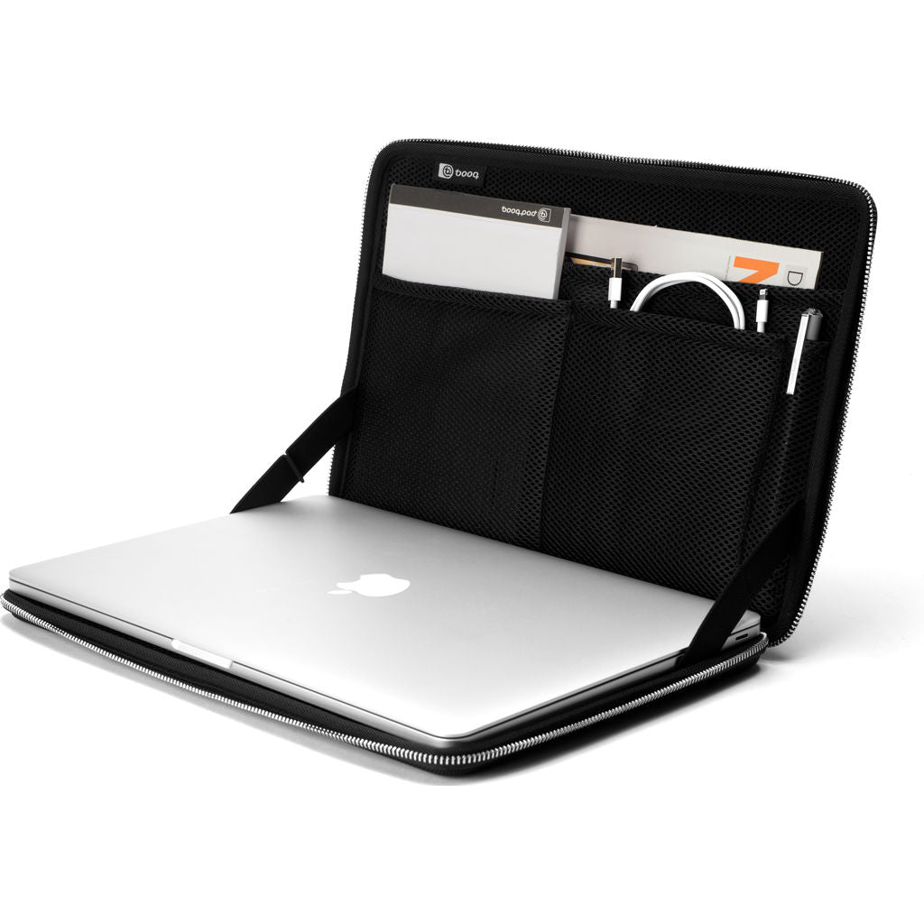 The Booq Black Laptop Hardcase M is perfectly fitted for the 15-inch MacBook Pro with Touchbar. The Hardcase offers two levels of protection: a slick, rugged water-resistant 1680 denier ballistic nylon exterior provides superior protection from abrasive surfaces and the elements, while the nicely padded, air-mesh interior of this case snugly cradles your laptop and provides additional storage space for your accessories.