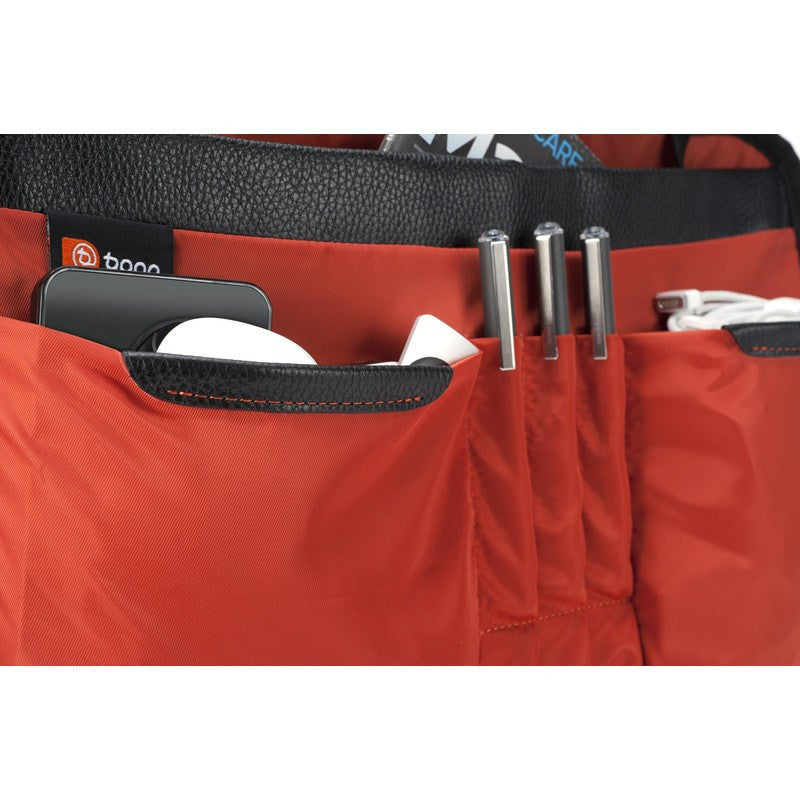 • The luxurious copper-colored Cobra lining fabric is magically smooth, lightweight and durable. As opposed to dark fabrics used inside other bags, this totally corporate booq color makes it easy to navigate the dark side.