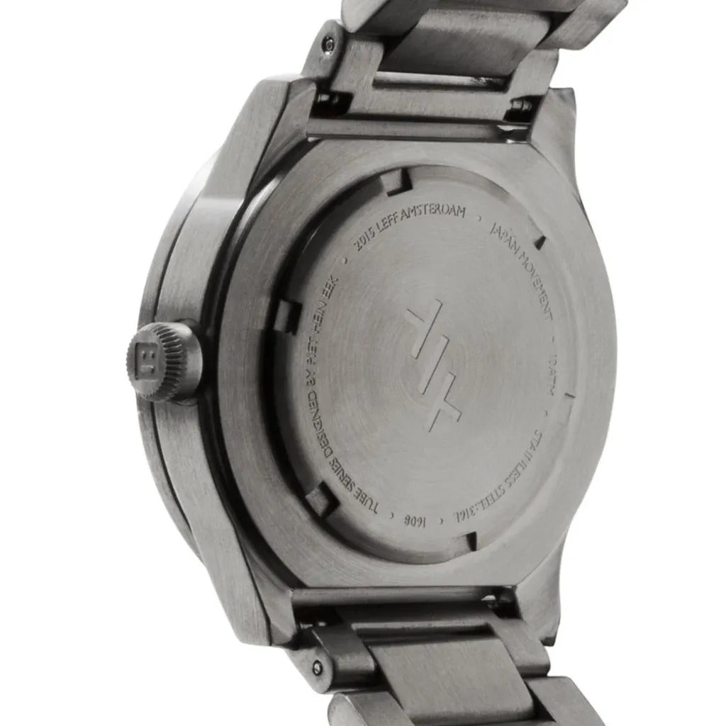 For the design of the Tube watch, we teamed up with Dutch Designer Piet Hein Eek. Piet's unparalleled vision on design and LEFF Amsterdam's raw, industrial and sophisticated approach, came together in an amazing collection of refined yet tough watches. The design of the Tube watch has an iconic extruded ring that functions as the clock's face. Therefore, you can recognize every LEFF Amsterdam watch with this unique characteristic.