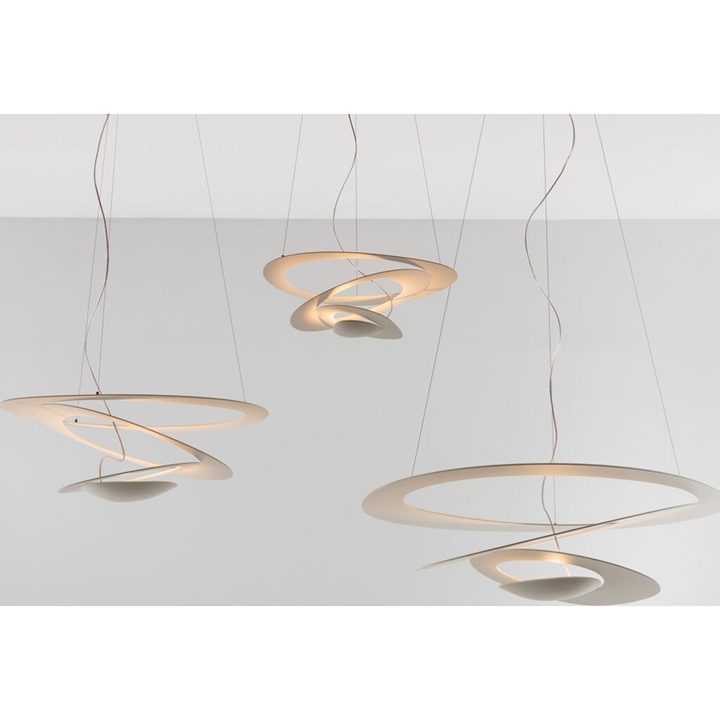 Artemide presents a unique Pirce Micro Suspension Ceiling Light that offers an elegant look to your room, office, or shop. It is made from super grade aluminum. The dimensions are 94x97x28cm (LxWxH). This ceiling lamp has an elegantly simple design comprising a thick base and narrow rods. A sphere-shaped diffuser is attached at the center of the rod at the top, and the lamp casts a warm, cozy light through an oval glass diffuser. With its compact size, this lamp is versatile and ideal for use in homes and commercial spaces. The lamp can offer a smooth, comforting, and relaxed feeling to a house the second it is turned on. It is the perfect decor for a beautiful modern home.